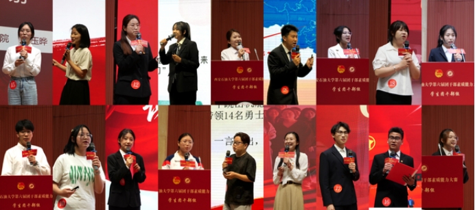 為充分展示青春風(fēng)采,激發(fā)青春活力,增強(qiáng)基層學(xué)生團(tuán)干部的業(yè)務(wù)能力和素養(yǎng),切實(shí)發(fā)揮以賽促學(xué)、以賽代練的作用,5月28日,由校團(tuán)委主辦,石油工程學(xué)院團(tuán)委承辦的我校第六屆團(tuán)干部素質(zhì)能力大賽(學(xué)生團(tuán)干部組)決賽暨青春風(fēng)采展示活動(dòng)在鄠邑校區(qū)弘石學(xué)術(shù)報(bào)告廳舉辦。校團(tuán)委副書記王軍策,學(xué)生工作部學(xué)生管理科科長郭媛,校團(tuán)委組織部部長付強(qiáng)、宣傳部副部長李佩琦,石油工程學(xué)院學(xué)生工作辦公室副主任史陽擔(dān)任比賽評(píng)委。