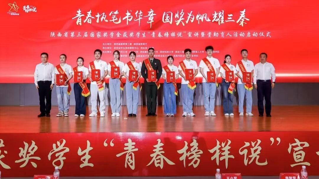 宣講環(huán)節(jié),西安理工大學耿晶以 “追光之旅” 分享競賽逐夢歷程,呼吁青年扎根祖國需要之處;西安工程大學梁振宇講述退役復學后的堅守擔當,榜樣們用奮斗故事傳遞著拼搏向上的精神力量。
