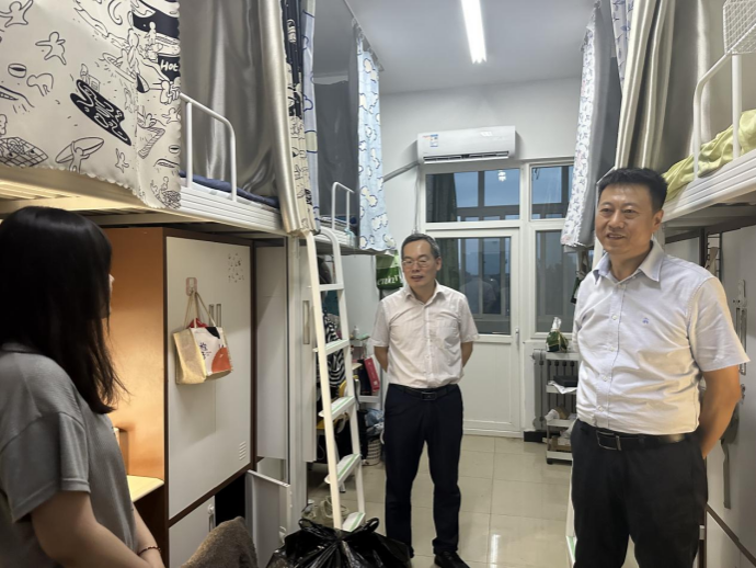 為切實做好2025屆畢業(yè)生畢業(yè)季相關(guān)工作,進(jìn)一步了解我院畢業(yè)生的思想動態(tài)與生活狀況,傳遞學(xué)院關(guān)懷,6月9日,外國語學(xué)院黨委書記張建高、副院長陳武、學(xué)生工作辦公室副主任陳浩、輔導(dǎo)員王藝蓉深入2025屆畢業(yè)生宿舍,為即將踏上征程的畢業(yè)生送上溫馨的關(guān)懷與祝福。