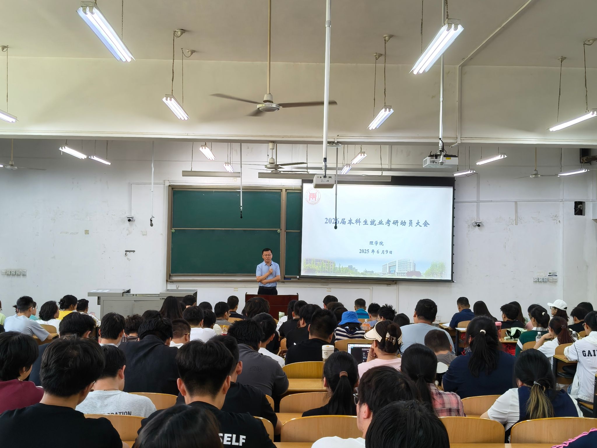 為扎實做好2026屆本科生就業(yè)考研工作,助力學生明確職業(yè)目標,提升就業(yè)和考研競爭力,6月9日,理學院在鄠邑校區(qū)博思樓B125教室召開2026屆畢業(yè)生就業(yè)考研動員大會。學院院長折延宏,黨委副書記楊富民出席大會,應用物理系副主任丁繼軍、應用數(shù)學系副主任馬儇龍以及2026屆全體本科畢業(yè)生參加大會。會議由學生工作辦公室副主任龐波主持。