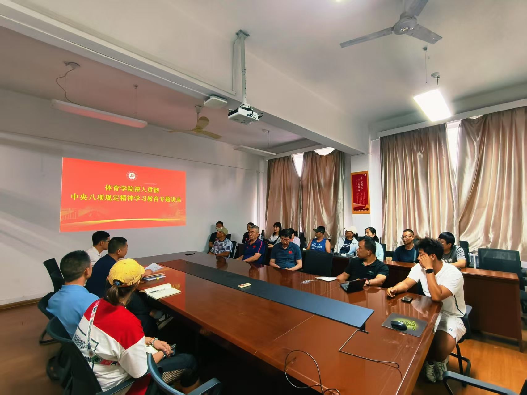 6月8日,全體教工黨員在華油能源樓733室針對本次主題黨日活動進行感悟分享,黨員代表結合中央八項規(guī)定精神和自身工作實際,暢談如何在日常工作生活中嚴守紀律紅線,以優(yōu)良作風推動體育教學、教學管理、學生管理等工作高質(zhì)量發(fā)展。同時緊密結合作風建設,暢談怎樣加強廉潔自律、嚴守師德規(guī)范,營造風清氣正的校園環(huán)境。