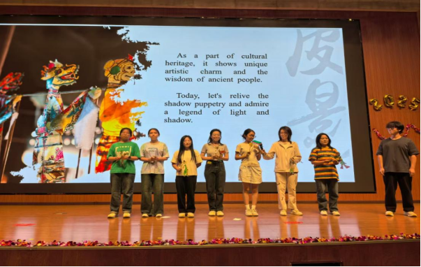 學子們以英語為舟,破浪前行,整個舞臺成為了文化交流的璀璨窗口。經(jīng)濟管理學院張云喆的深情獨唱《Strawberries & Cigarettes》和電子工程學院馬翔宇獻唱的迪士尼經(jīng)典《Reflection》盡顯聲音魅力;新能源學院史沐涵演繹的《Tough Love》更是將情感與語言技巧融為一體;計算機學院、地球科學與工程學院帶來的《長發(fā)公主》《狗狗博客》及理學院呈現(xiàn)的《奇跡男孩》配音秀,精準捕捉角色神韻,展現(xiàn)了卓越的語音模仿與表達力;人文學院張藝菲與新能源學院高天樂等聯(lián)袂獻演的傳統(tǒng)《嫦娥奔月》皮影戲,光影流轉(zhuǎn)間流淌著東方神韻;石油工程學院施瀾、李熠輝創(chuàng)新的《傳說中的英語相聲》,妙語連珠中架起中西幽默的橋梁;人文學院學子演繹的《武林外傳》情景劇,則為經(jīng)典注入國際化表達。歌曲串燒由來自石工、經(jīng)管、電工、地科、計算機、材料、人文、化工、理學院、新能源、機械等11個學院的近100名學子共同完成,《Take me home》《Country Road》經(jīng)典旋律響徹全場,氣勢恢宏,綜合性大學的育人優(yōu)勢在此刻熠熠生輝。從臺前的演員陣容到幕后的技術(shù)支撐,處處可見各個學院廣泛參與的身影,每一個環(huán)節(jié)的緊密銜接,都是跨學院團隊協(xié)作精神的勝利。