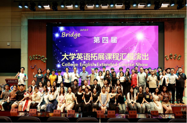 夏夜星輝與舞臺流光交相輝映,青春活力與多元文化激情碰撞。6月11日晚,備受矚目的“Bridge 2025”第四屆大學英語拓展課程匯報演出在西安石油大學弘石報告廳盛大舉行。副校長蘇文甫、采購招標處處長陳熙、學生工作部副部長畢軼慧,外國語學院黨委書記張建高、副院長陳武、黨委副書記邱嶺、英語系主任鐘澤波、大學外語第二教學部主任彭建、教學辦主任尹曉嬌和大學外語第一教學部拓展課程組全體教師出席活動。當晚師生代表300余人共同沉浸于這場由十余個學院學子聯(lián)袂奉獻的跨學科、跨文化的“盛夏視聽盛宴”。