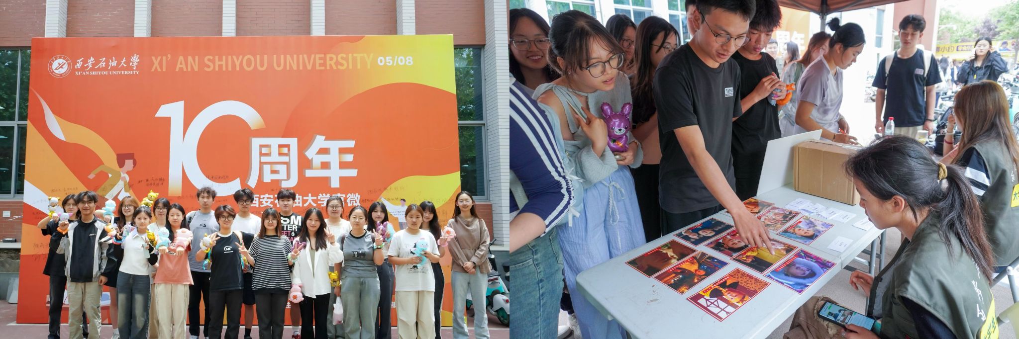 5月8日,大學(xué)生新聞社在東區(qū)食堂門口舉辦官微十周年慶典活動(dòng)。本次活動(dòng)以“十年相伴‘微’光同行”為主題,通過(guò)文藝表演、互動(dòng)游戲等形式,慶祝官微“小油”十周歲生日?;顒?dòng)現(xiàn)場(chǎng),同學(xué)們參與互動(dòng)小游戲并寫下對(duì)“小油”的祝福。大學(xué)生新聞社作為傳遞信息的窗口、師生交流的橋梁,用一篇篇圖文記錄校園變遷,用一個(gè)個(gè)故事凝聚師生情感。