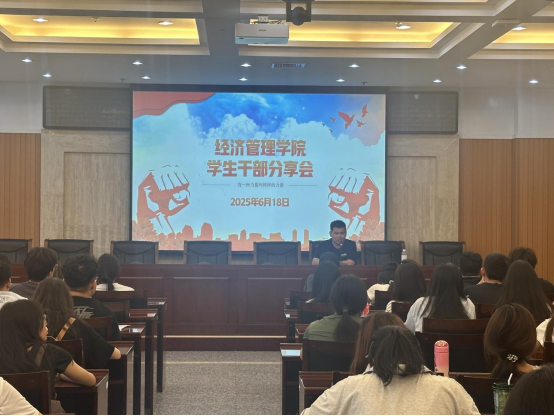 動員大會結(jié)束后,姬祥飛面向經(jīng)濟管理學院2024級全體學生干部開展專題分享會。姬祥飛結(jié)合自身學生工作經(jīng)歷與成長感悟,給學生干部們傳授經(jīng)驗。在互動環(huán)節(jié),面對學生干部提出的“如何樹立良好學生干部形象發(fā)揮引領(lǐng)作用”“如何帶動身邊同學共同進步,營造積極氛圍”等現(xiàn)實困惑,他逐一剖析解答,話語里滿是實踐智慧的沉淀,為學生干部隊伍注入了工作思路與成長動力。