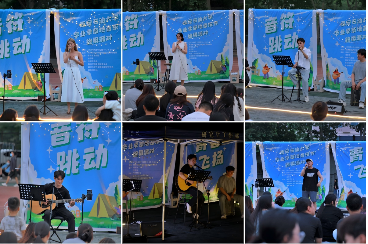 6月19日晚,西安石油大學(xué)雁塔校區(qū)足球場南側(cè)草坪化作露天音樂廳,由研究生工作部、音樂系主辦,校研究生會(huì)及石油工程學(xué)院、地球科學(xué)與工程學(xué)院研究生會(huì)共同承辦的“音符跳動(dòng)·青春飛揚(yáng)”畢業(yè)季草地音樂節(jié)在此溫情啟幕。研究生工作部、音樂系負(fù)責(zé)人、研究生工作部工作人員、輔導(dǎo)員代表及研究生代表共200余人參加了此次活動(dòng)?;顒?dòng)以音樂為紐帶,串聯(lián)起畢業(yè)學(xué)子的校園記憶,為離別季增添了一抹藝術(shù)亮色。