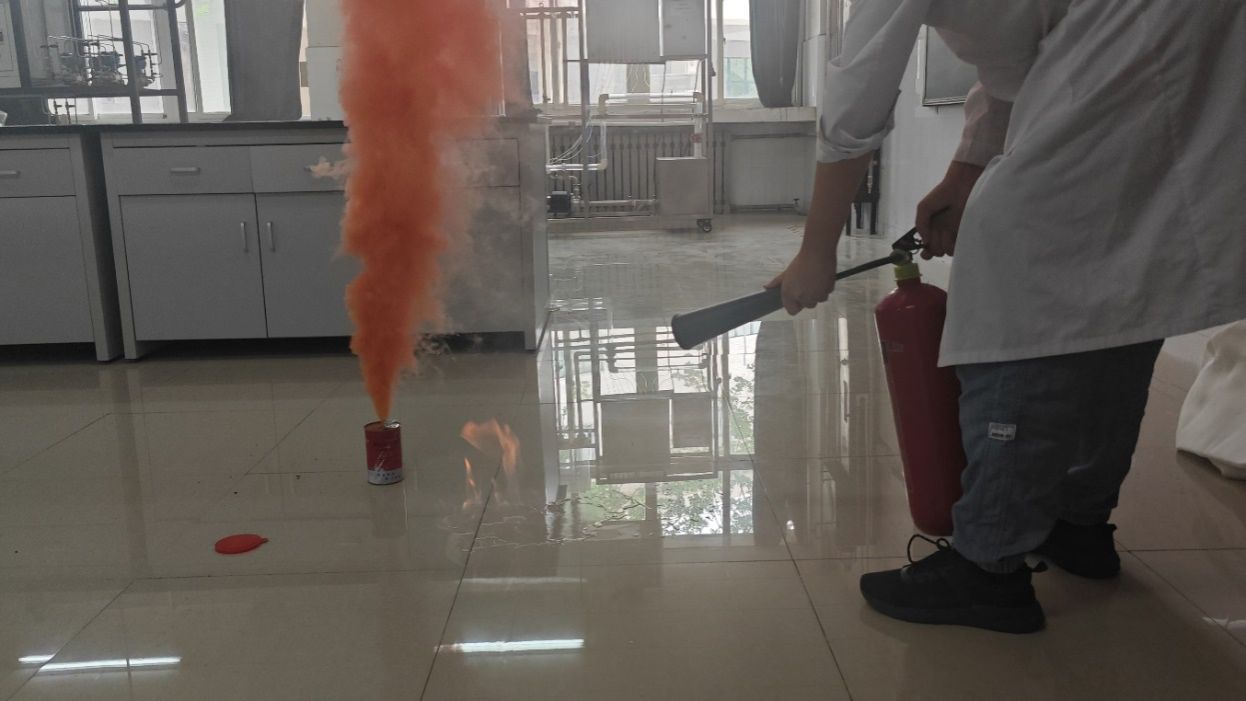 此次演練模擬了實(shí)驗(yàn)過(guò)程中酒精泄漏并發(fā)生火災(zāi)的事故場(chǎng)景。演練前化學(xué)化工學(xué)院實(shí)驗(yàn)中心制定了詳細(xì)的方案,從人員安排、環(huán)境布置、逃生線路、集結(jié)地點(diǎn)均作了具體安排,力求演練真實(shí)、有效。實(shí)驗(yàn)中心主任張新強(qiáng)老師進(jìn)行了現(xiàn)場(chǎng)講解,要求師生要熟悉逃生通道,會(huì)判定火情,掌握求救方法、撤離方法、滅火器使用方法等。