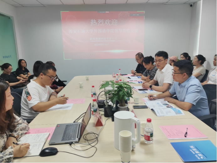 在校企合作交流環(huán)節(jié),雙方就未來行業(yè)發(fā)展趨勢和合作項目等方面進行了深入交流。雙方圍繞語言服務(wù)人才培養(yǎng)、翻譯項目實踐、產(chǎn)學(xué)研融合等展開熱烈討論。陜西慧瀾科技有限公司渠道經(jīng)理張軒瑋希望學(xué)院能為公司輸送具備扎實英語功底、具有石油等垂直領(lǐng)域知識的翻譯人才,公司愿為學(xué)生提供實習(xí)崗位與職業(yè)發(fā)展通道,參與學(xué)院翻譯課程設(shè)計,引入真實翻譯項目進課堂。鄧林表示期待與企業(yè)共建實習(xí)實訓(xùn)基地,開展聯(lián)合科研項目,借助企業(yè)資源提升師生的翻譯實踐與科研水平,共同推動語言服務(wù)行業(yè)發(fā)展。校企合作交流環(huán)節(jié)中,雙方就合作細節(jié)深入探討,明確了后續(xù)合作規(guī)劃。