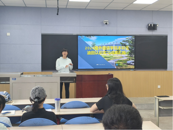 在成果匯報環(huán)節(jié),2024級英語、翻譯、俄語3個專業(yè)7個班級以雙語調(diào)研報告、演講、實習(xí)題材攝影成果展示等形式展示實習(xí)收獲。展現(xiàn)外語能力與能源知識的融合成果,為實習(xí)畫上圓滿句號。各班級匯報既展現(xiàn)了油氣勘探流程、壓裂技術(shù)等行業(yè)知識的認(rèn)知成果,也突出外語在技術(shù)文檔翻譯、國際合作溝通中的應(yīng)用實踐。各班班主任老師對學(xué)生將語言能力與能源行業(yè)深度結(jié)合的成果給予高度評價。