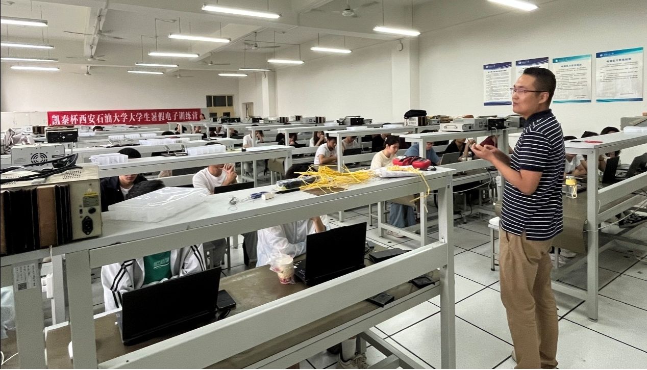 此次“凱泰杯”西安石油大學(xué)大學(xué)生暑假電子訓(xùn)練營(yíng)得到了江蘇建湖凱泰石油機(jī)械有限公司的大力支持,電子工程學(xué)院實(shí)驗(yàn)教學(xué)與創(chuàng)新中心組織并提供全程軟硬件保障,共同構(gòu)建起“理論學(xué)習(xí)—實(shí)踐操作—假期拓展”的閉環(huán)培養(yǎng)體系。