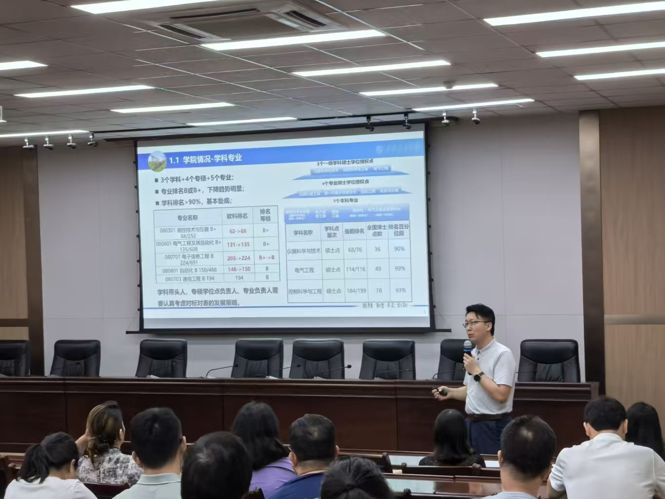 在博士點(diǎn)申報工作方面,李飛介紹學(xué)院下一步重點(diǎn)工作計劃和六大工作舉措,具體舉措包括:重大重點(diǎn)項目培育、人才培養(yǎng)及平臺建設(shè)、人才引育、博導(dǎo)培育、高水平期刊論文發(fā)表和學(xué)術(shù)交流六個方面。并提出“以申促建”的具體工作思路,通過申報工作帶動學(xué)科整體水平提升。