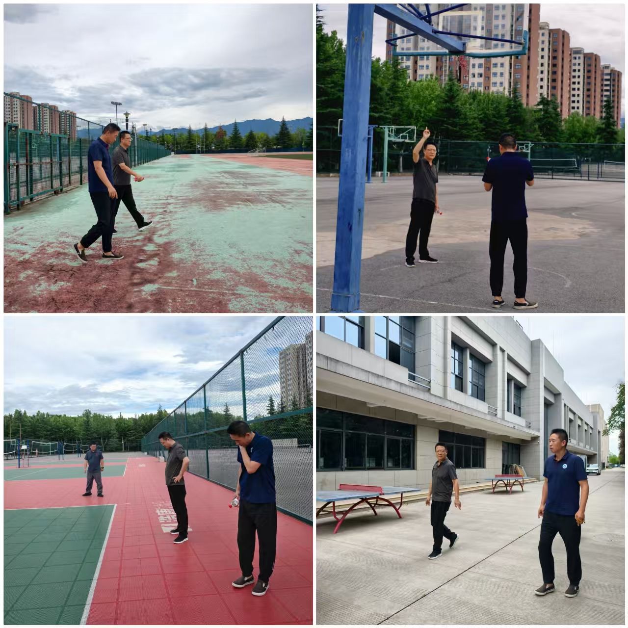 在安全專項檢查中,學院對鄠邑校區(qū)西體育場、籃球場、排球場、網(wǎng)球場、羽毛球場、素質(zhì)拓展基地等重要區(qū)域進行了細致的安全隱患排查。檢查內(nèi)容涵蓋場地設(shè)施結(jié)構(gòu)穩(wěn)固性、用電安全、消防設(shè)備完好性、防護設(shè)施可靠性以及場地器材維護狀況等多個關(guān)鍵環(huán)節(jié)。劉小波說,校園安全是學校高質(zhì)量發(fā)展的基石,我們要以“時時放心不下”的責任感抓好隱患排查,為學校發(fā)展貢獻體育力量。李壽邦結(jié)合檢查情況,要求學院相關(guān)負責人、場地管理員要定期巡查,對發(fā)現(xiàn)的老化區(qū)域要設(shè)置警戒標識,并及時上報學校,組織更換,確保師生使用安全。