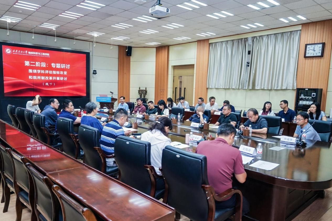 藍(lán)圖聚力,部署攻堅任務(wù),激活改革發(fā)展“新動能”。8月10日上午,地球科學(xué)與工程學(xué)院改革發(fā)展研討會在雁塔校區(qū)第二會議室以線上線下聯(lián)動方式召開。高黎主持會議并作動員講話,通過四組關(guān)鍵指標(biāo)警示數(shù)據(jù)對比,分析制約學(xué)院發(fā)展的三大結(jié)構(gòu)性矛盾,結(jié)合第六輪學(xué)科評估五大顛覆性變化,強(qiáng)調(diào)聚焦院所制改革等重點(diǎn)任務(wù),要求進(jìn)一步提高站位抓認(rèn)識,迅速行動抓落實(shí),突出重點(diǎn)抓攻堅,同步壓實(shí)責(zé)任清單,守好安全穩(wěn)定底線,以“功成不必在我”的境界和“功成必定有我”的擔(dān)當(dāng)推動學(xué)院發(fā)展邁上新臺階。宋立軍傳達(dá)學(xué)校學(xué)科建設(shè)工作調(diào)度會精神,以“深化地學(xué)一流學(xué)科建設(shè) 推動學(xué)院高質(zhì)量發(fā)展”為題,從學(xué)科發(fā)展概況、學(xué)科發(fā)展規(guī)劃和近期重點(diǎn)工作三個方面,通報學(xué)院學(xué)科建設(shè)總體進(jìn)展和院所制改革思路。副院長沈鴻雁通報近期教學(xué)重點(diǎn)工作,解讀學(xué)校科研達(dá)標(biāo)工作和學(xué)科競賽等學(xué)校重要文件精神。副院長曹靜杰解讀學(xué)校“學(xué)科達(dá)標(biāo)年”重點(diǎn)工作,并就推進(jìn)學(xué)院“十五五”規(guī)劃編制、第六輪學(xué)科評估籌備工作作重點(diǎn)部署。線下會議同步圍繞“學(xué)科評估指標(biāo)攻堅”“院所制改革”開展研討。學(xué)院黨委委員、領(lǐng)導(dǎo)班子成員,學(xué)術(shù)分委員會成員,學(xué)位評定分委員會委員,工會委員會委員,各系黨支部書記(副書記)、主任(副主任),各學(xué)科、專業(yè)負(fù)責(zé)人,各辦公室主任(副主任)等線下參會。全院其他教職工線上參會。