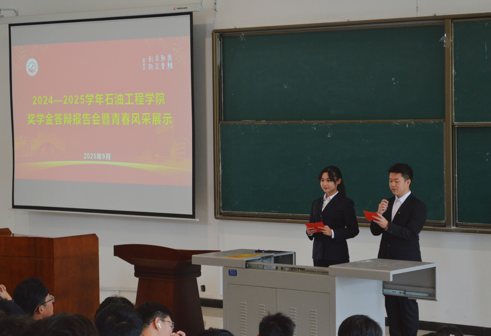 為深入貫徹落實(shí)陜西省教育廳關(guān)于國家獎(jiǎng)學(xué)金評審工作的部署要求,充分發(fā)揮國家獎(jiǎng)學(xué)金在人才培養(yǎng)中的激勵(lì)導(dǎo)向作用,919日,石油工程學(xué)院在開物樓115教室成功舉辦2024-2025學(xué)年國家獎(jiǎng)學(xué)金答辯評審會暨青春風(fēng)采展示活動。學(xué)院黨委書記司馬文龍、學(xué)生工作辦公室副主任史陽以及各年級輔導(dǎo)員出席,2025級全體新生共同參與。