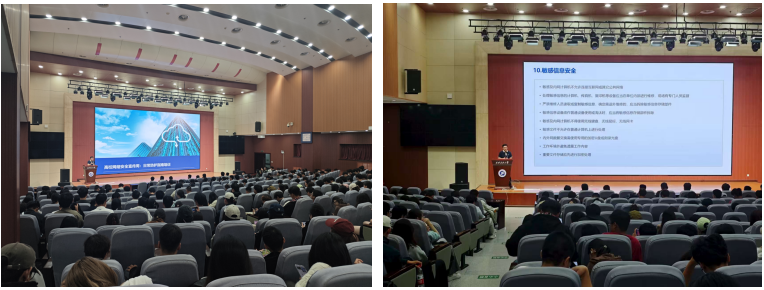 開展“警校共治”宣傳活動,學(xué)校積極聯(lián)動西安市公安局鄠邑分局,9月18日,為鄠邑校區(qū)本科新生舉辦“公安鄠邑分局進(jìn)校新生安全教育報(bào)告會”,從網(wǎng)絡(luò)安全、政治保衛(wèi)、禁毒緝毒、反電信詐騙四個領(lǐng)域,運(yùn)用豐富詳實(shí)的案例,以生動形象的語言和深入淺出的方式,為師生帶來了一堂意義深遠(yuǎn)、觸動心靈的法治教育課,引導(dǎo)新生樹立正確的網(wǎng)絡(luò)安全觀。