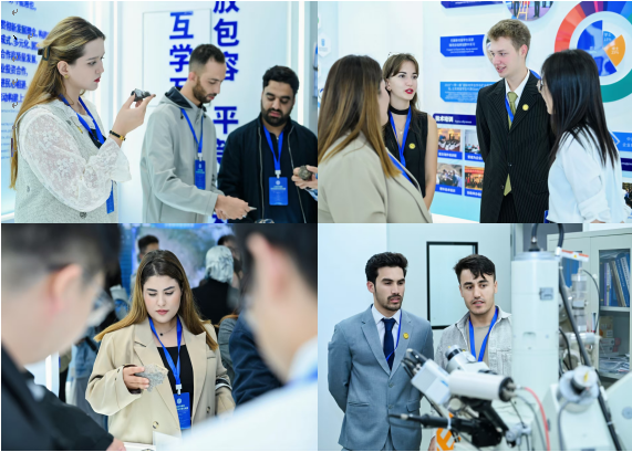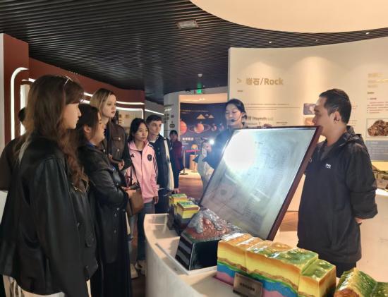 參觀學(xué)習(xí)環(huán)節(jié),師生們沉浸式參觀中心展廳與實驗室,從地學(xué)領(lǐng)域國際合作成果展板到各類地質(zhì)標(biāo)本實物,深入了解上合組織成員國在地質(zhì)調(diào)查、資源勘探、人才培養(yǎng)等領(lǐng)域的國際合作歷程與突破。大家仔細觀察電子探針、場發(fā)射掃描電鏡等高精度儀器,了解其在地質(zhì)樣本分析與地質(zhì)結(jié)構(gòu)研究中的原理與應(yīng)用。過程中,國際學(xué)生們結(jié)合專業(yè)所學(xué)積極提問,科研人員耐心解答,現(xiàn)場互動氛圍熱烈。