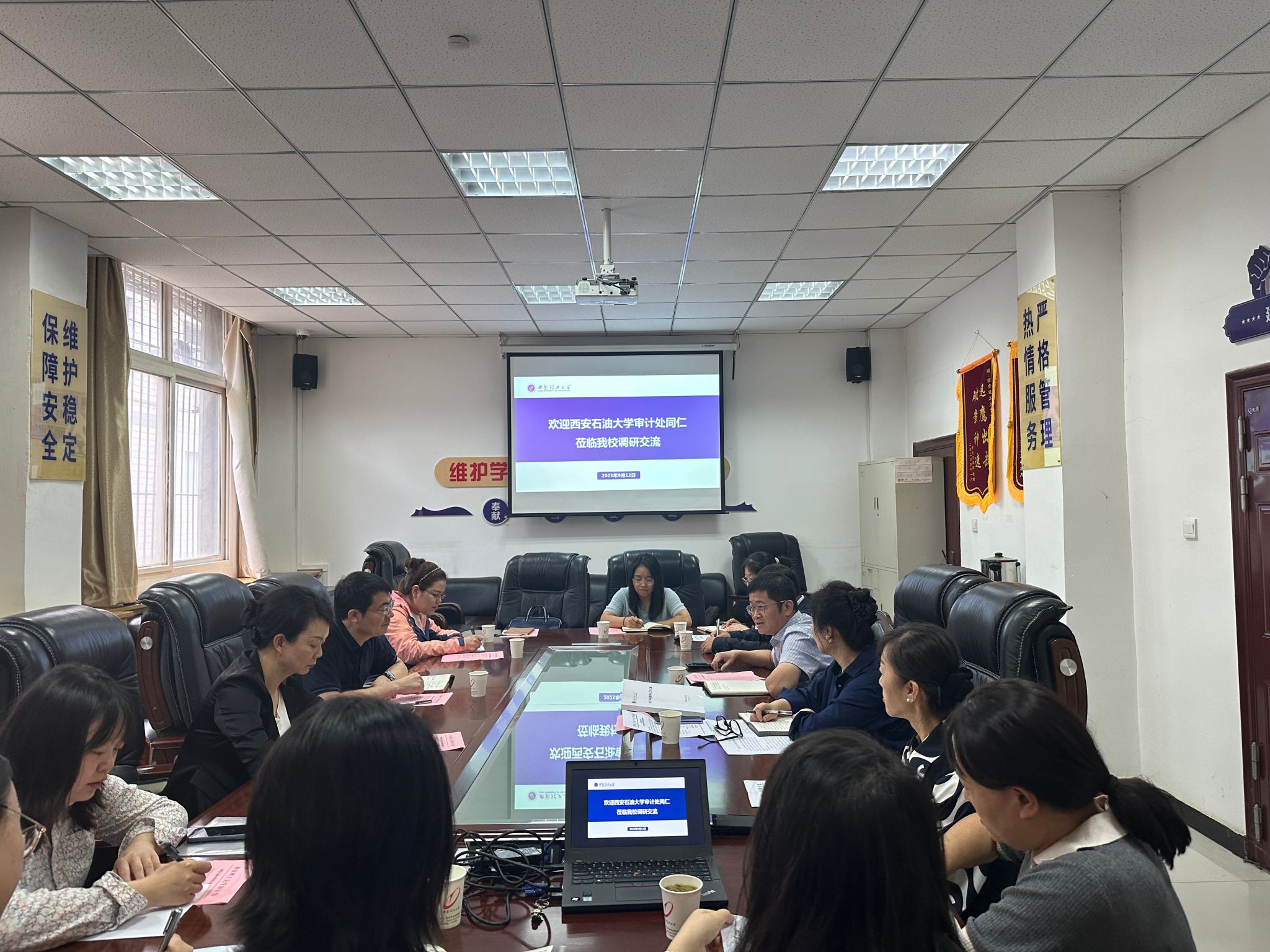 為深入貫徹落實審計“三如”重要要求,認(rèn)真履行新時代內(nèi)部審計工作職責(zé),主動作為、積極作為、有效作為,學(xué)習(xí)借鑒兄弟高校在審計領(lǐng)域的先進經(jīng)驗和創(chuàng)新做法,持續(xù)推動學(xué)校內(nèi)部審計工作高質(zhì)量發(fā)展。近期,學(xué)校審計處處長高小明、副處長盛丹一行六人分別赴西北大學(xué)、西安理工大學(xué)、西安建筑科技大學(xué)、西北政法大學(xué)、西安工業(yè)大學(xué)、西安郵電大學(xué)等六所高校開展專題調(diào)研交流。此次調(diào)研聚焦審計制度創(chuàng)新、內(nèi)部控制優(yōu)化、經(jīng)濟責(zé)任審計深化、審計信息化建設(shè)及審計整改等內(nèi)容,通過實地考察、座談研討等形式展開。