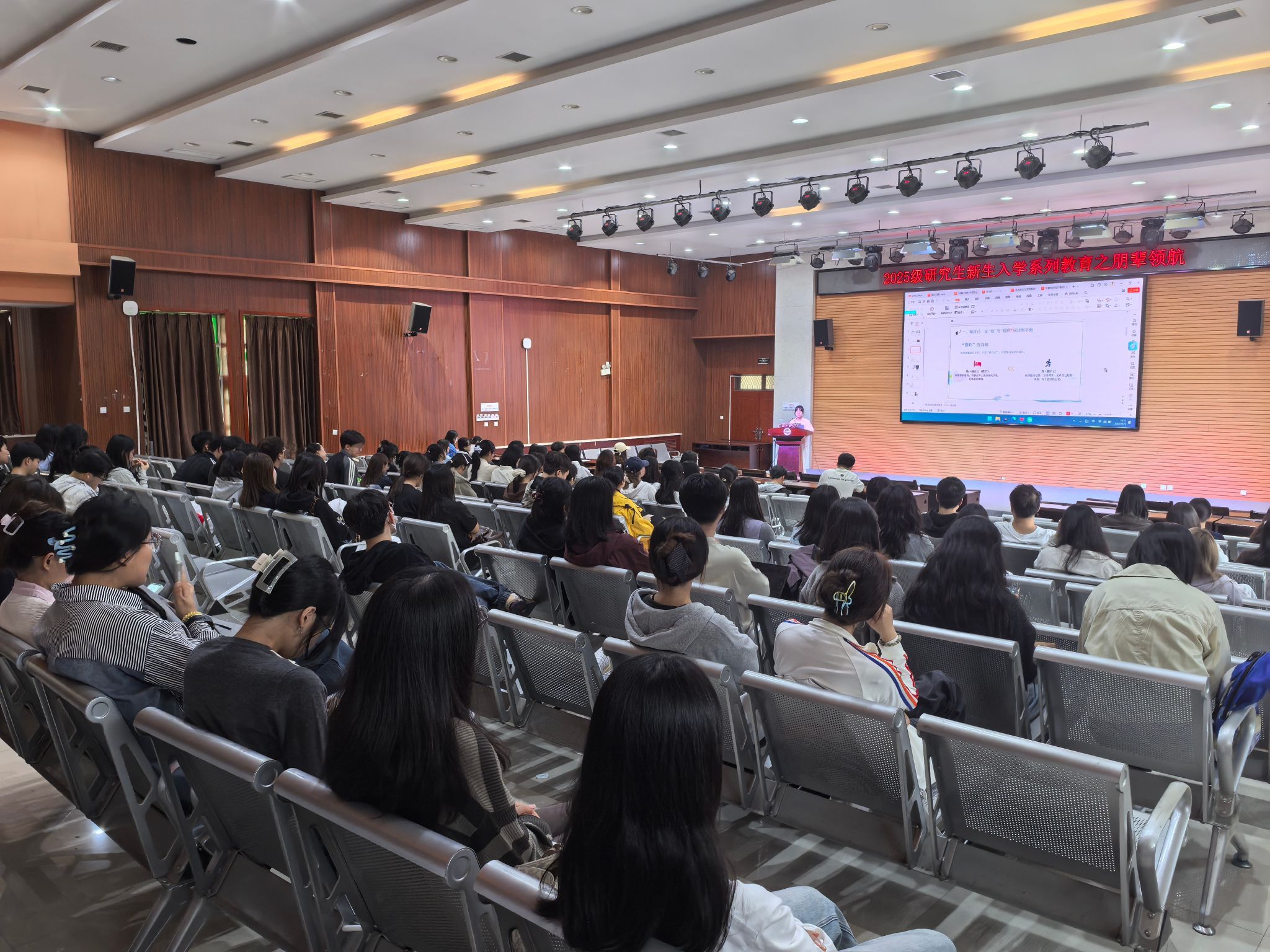 為幫助2025級(jí)研究生新生快速融入學(xué)術(shù)環(huán)境、明晰研途發(fā)展路徑,9月25日下午,由研究生工作部精心策劃的新生入學(xué)教育之朋輩領(lǐng)航交流分享會(huì)分別在雁塔校區(qū)第三會(huì)議室和鄠邑校區(qū)崇文樓118室舉行。本次活動(dòng)特邀我校8位來(lái)自不同學(xué)科專業(yè)的優(yōu)秀碩博士研究生擔(dān)任“領(lǐng)航人”,圍繞學(xué)術(shù)科研、學(xué)業(yè)規(guī)劃、導(dǎo)學(xué)交流等新生關(guān)切話題展開(kāi)深度分享。他們?yōu)檠芯可律钌狭艘粓?chǎng)兼具深度與實(shí)用性的成長(zhǎng)指南,2025 級(jí)研究生新生代表共計(jì)300余人參加交流會(huì),現(xiàn)場(chǎng)氛圍熱烈。