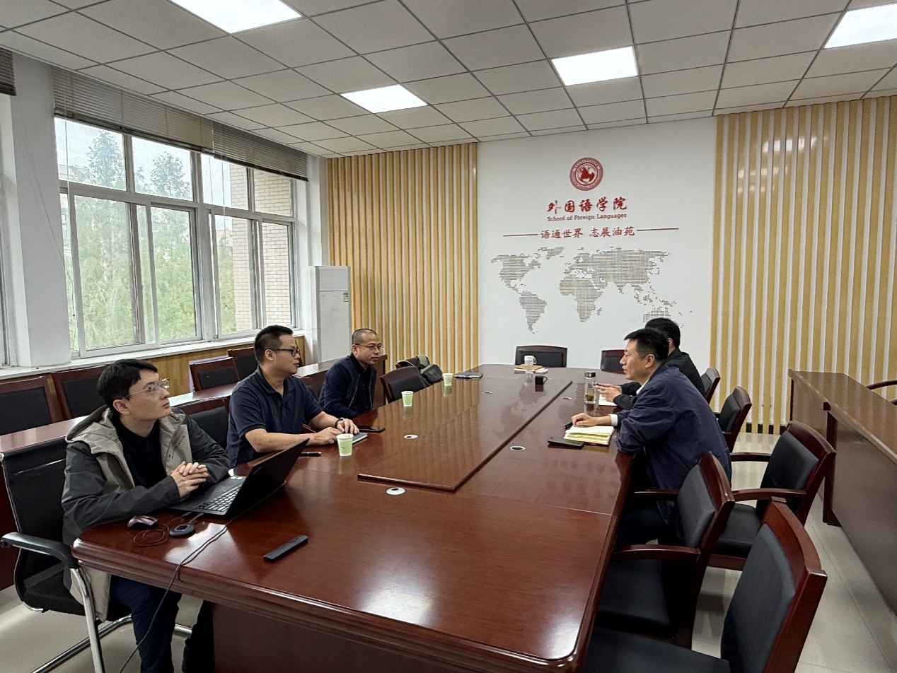 陳武副院長首先對林世賓總經(jīng)理、西安公司總經(jīng)理吳強(qiáng)一行的到訪致以熱烈歡迎,并結(jié)合學(xué)院辦學(xué)特色簡要介紹發(fā)展概況。他重點指出,學(xué)院長期聚焦“翻譯 + 石油能源” 交叉領(lǐng)域,以培養(yǎng)貼合行業(yè)需求的高水平應(yīng)用型翻譯人才為核心目標(biāo),近年來在課程體系優(yōu)化、實踐平臺搭建等方面積累了扎實基礎(chǔ)。陳武副院長強(qiáng)調(diào),雙方可通過資源互補(bǔ)進(jìn)一步提升學(xué)生的行業(yè)實戰(zhàn)能力與崗位適配度,推動學(xué)院外語學(xué)科建設(shè)與石油行業(yè)發(fā)展需求深度綁定,為行業(yè)輸送更多 “懂翻譯、知能源” 的復(fù)合型人才。