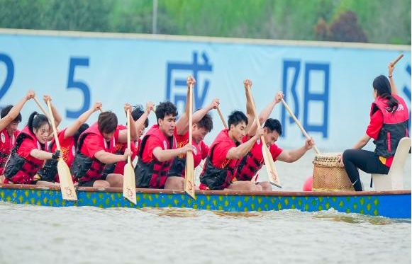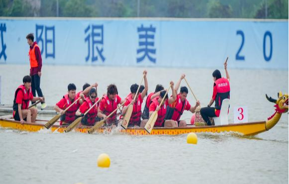 西安石油大學(xué)龍舟隊(duì)咸陽湖畔競渡展風(fēng)采,勇毅拼搏傳文化