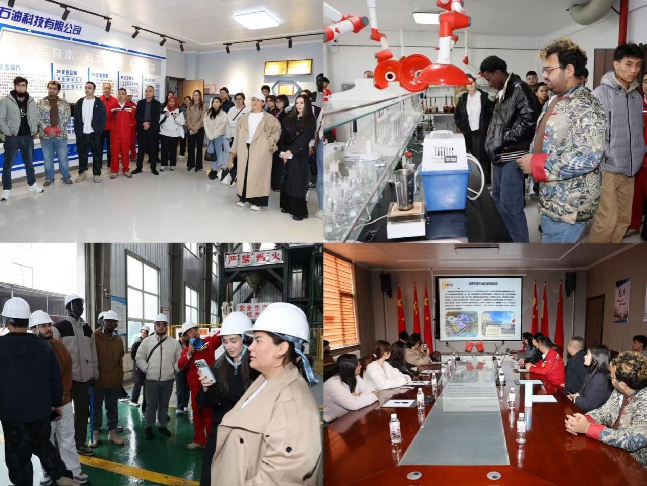 活動(dòng)首站聚焦中國能源領(lǐng)域發(fā)展,師生一行到訪陜西萬德石油科技有限公司。公司副總經(jīng)理李耀龍對(duì)師生表示歡迎,結(jié)合企業(yè)發(fā)展歷程、主營業(yè)務(wù),系統(tǒng)介紹石油行業(yè)最新形勢(shì)與未來戰(zhàn)略規(guī)劃,幫助國際學(xué)生建立對(duì)中國能源企業(yè)創(chuàng)新成果的整體認(rèn)知。在工作人員帶領(lǐng)下,國際學(xué)生依次走進(jìn)泥漿實(shí)驗(yàn)室、理化實(shí)驗(yàn)室、固井實(shí)驗(yàn)室、自控中心及高分子集合物、纖維素生產(chǎn)車間,直觀了解各類設(shè)備功能、實(shí)驗(yàn)原理與生產(chǎn)流程,清晰掌握現(xiàn)代技術(shù)在石油科技領(lǐng)域的實(shí)際應(yīng)用。互動(dòng)交流環(huán)節(jié)中,國際學(xué)生結(jié)合自身專業(yè)知識(shí),圍繞參觀中的疑問積極提問;企業(yè)工作人員逐一細(xì)致解答,并就國際學(xué)生未來在華、在企就業(yè)發(fā)展展開深入探討,為學(xué)生職業(yè)規(guī)劃提供參考。