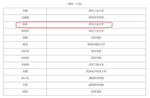 近日,第五屆陜西省大學數(shù)學課程教學創(chuàng)新競賽獲獎結果公布,我校理學院青年教師陳思博士在競賽中喜獲一等獎。