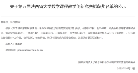 陜西省大學數(shù)學課程教學創(chuàng)新競賽由陜西省教科文衛(wèi)體工會委員會和陜西省數(shù)學會聯(lián)合舉辦,賽事旨在引導全省高校數(shù)學教師關注教學內容優(yōu)化、教學方法改進與教學模式創(chuàng)新,進一步發(fā)揮課堂教學在人才培養(yǎng)中的核心作用,助力新時代高等教育教學質量提升。