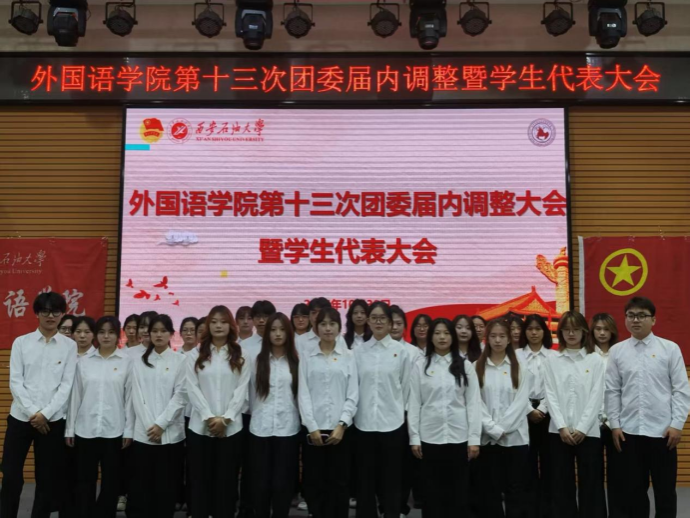 10月30日,外國語學(xué)院第十三次團委屆內(nèi)調(diào)整暨學(xué)生代表大會在鄠邑校區(qū)崇文樓118多功能廳隆重召開。校團委副書記王軍策、外國語學(xué)院各年級團總支書記、校學(xué)生會執(zhí)行主席以及各兄弟院(系)學(xué)生會負責(zé)人,本次大會學(xué)生代表共150余人參加。