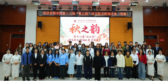為深入弘揚愛國主義精神,傳承中華優(yōu)秀傳統(tǒng)文化,提升學生人文素養(yǎng)。2025年10月30日晚,經濟管理學院第十八屆“秋之韻”詩文配樂朗誦比賽初賽在崇文樓118教室溫情啟幕。經濟管理學院團學指導老師李政、2025級輔導員劉清,學院團學干部、2025級新生參加了此次活動。