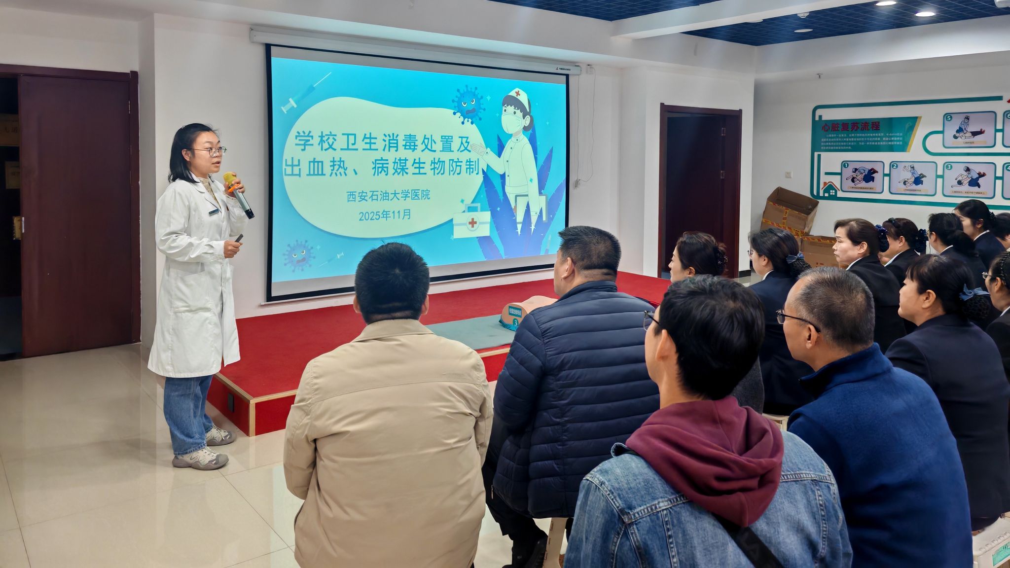 為全面提升校園應(yīng)急保障能力,筑牢師生生命安全防線,夯實(shí)幸福西石大建設(shè)的安全根基,推動(dòng)第三批“急救校園”建設(shè)落地見效,2025年11月5日下午,西安市鄠邑區(qū)紅十字會(huì)、校工會(huì)與校醫(yī)院聯(lián)合開展第二期教職工應(yīng)急救護(hù)專項(xiàng)培訓(xùn),40余名教職工(以后勤工作人員為主)踴躍參與,以專業(yè)賦能注入安全動(dòng)能。同步開展學(xué)校衛(wèi)生消毒處置及出血熱、病媒生物防治科普講座,以專業(yè)賦能全方位筑牢校園安全防線。