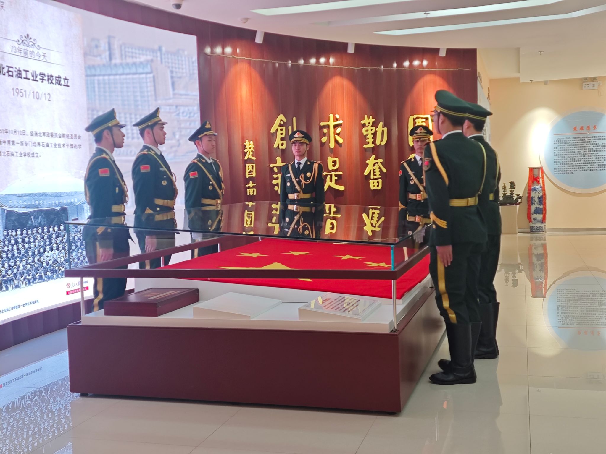 最后,檔案館館長馬超在總結(jié)發(fā)言中表示,國旗入館,是榮譽更是責任。通過講述該面國旗與校慶日的特殊淵源,校史館將串聯(lián)起學(xué)校與祖國能源事業(yè)同頻共振的發(fā)展故事。我們將以國旗為指引,賡續(xù)紅色血脈,傳承石油精神,讓愛國情、強國志、報國行在西石大的校園里代代相傳,共同書寫學(xué)校高質(zhì)量發(fā)展與祖國能源事業(yè)繁榮的嶄新篇章!