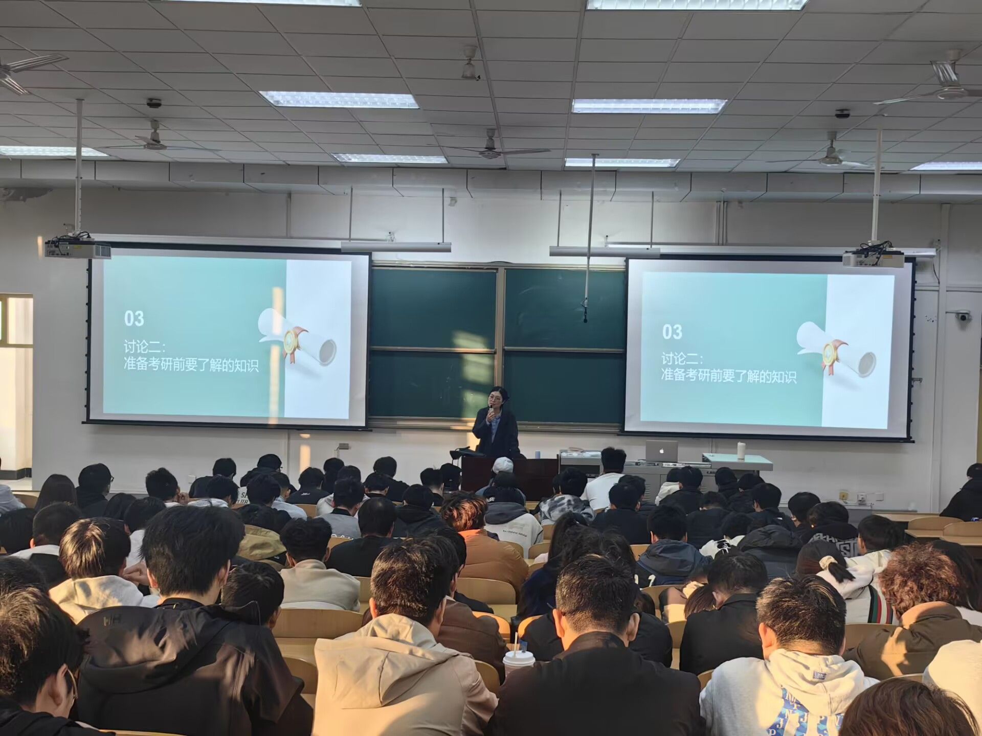考研輔導(dǎo)老師李海霞為同學(xué)們帶來了一場內(nèi)容詳實、富有啟發(fā)性的講座。她從社會發(fā)展需求、個人價值提升、職業(yè)發(fā)展前景等多個維度,深入剖析了考研的重要性與優(yōu)勢。同時,她結(jié)合多年指導(dǎo)經(jīng)驗,為同學(xué)們系統(tǒng)講解了考研準(zhǔn)備期間的關(guān)鍵環(huán)節(jié),包括院校專業(yè)選擇、復(fù)習(xí)策略制定、時間管理方法以及心態(tài)調(diào)整技巧等,為同學(xué)們提供了考研就業(yè)的方向性指引。同學(xué)們紛紛表示,通過講座,受益匪淺,要提前做好職業(yè)規(guī)劃,做到就業(yè)考研兩手抓。