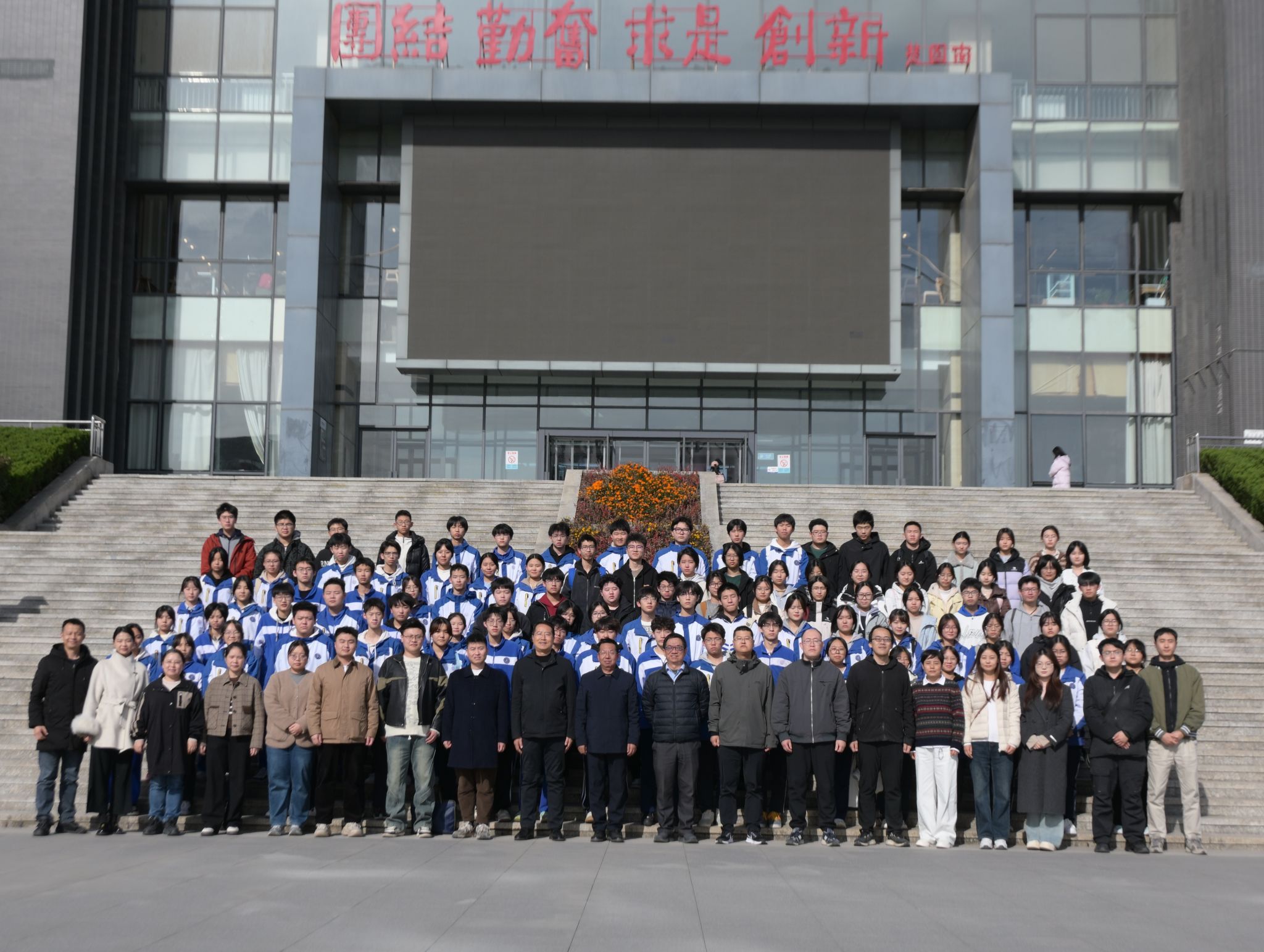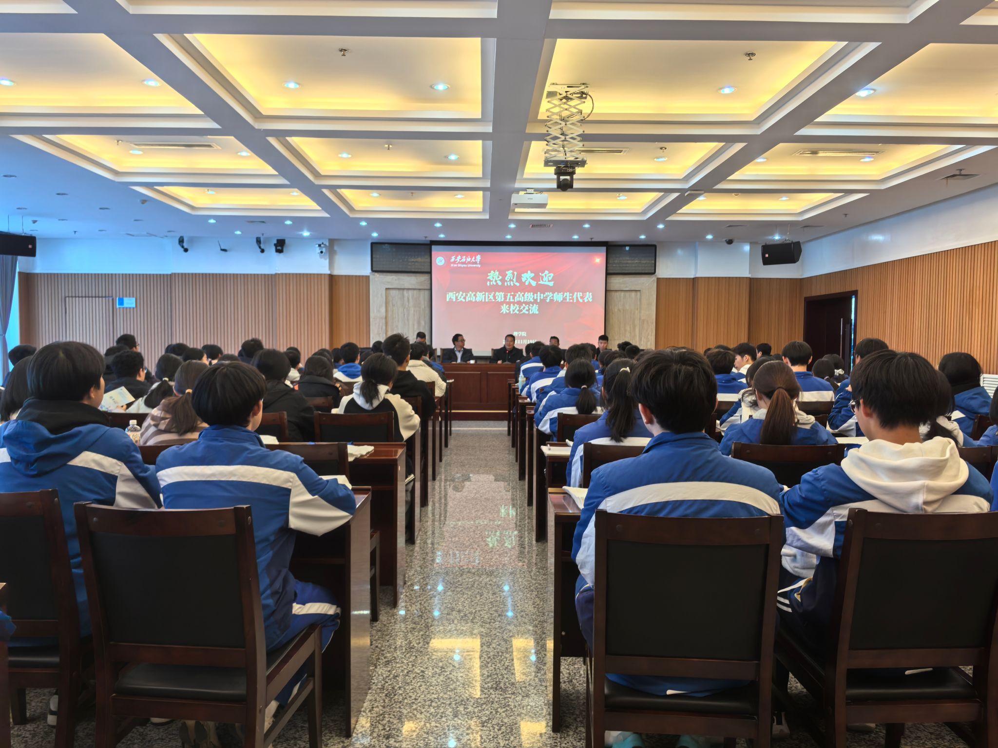 2025年11月19日下午,西安高新區(qū)第五高級中學(以下簡稱五高)受邀來我校開展研學活動,校長劉占權(quán)帶領(lǐng)師生代表100余人參加活動。理學院招生宣傳工作組代表學校接待五高師生并在鄠邑校區(qū)第一會議室舉行簡短的歡迎儀式。理學院黨委書記席利哲、副院長馬儇龍、理學院教授兼五高科技副校長郭文閣及理學院教師代表參加歡迎儀式。歡迎儀式開始前,與會人員在圖書館南門臺階前合影留念。歡迎儀式上,席利哲代表學校及理學院對五高師生代表的到來表示熱烈歡迎,并簡要介紹了研學活動行程和學校概況。