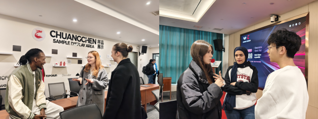 公司外籍人力資源總監(jiān)劉獻懿熱情接待了師生一行,并帶領(lǐng)大家全方位參觀了企業(yè)辦公場所與專業(yè)直播間。通過實地觀摩,留學生們直觀感受跨境電商的日常運營流程與內(nèi)容創(chuàng)作場景,對跨境電商行業(yè)的工作模式建立了具象化、系統(tǒng)化的認知框架。