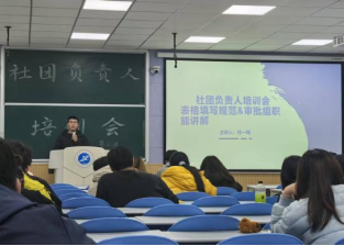 11月11日晚,校團委副書記王軍策在崇文樓118作“學生社團建設(shè)管理規(guī)定”的專題培訓(xùn),聚焦社團運行規(guī)范與社團負責人職責兩大核心內(nèi)容,強調(diào)社團干部應(yīng)始終堅定政治立場,把牢政治方向。他深入闡釋學生社團作為連接學校與廣大同學的重要紐帶,應(yīng)不斷強化內(nèi)部凝聚力,負責人應(yīng)端正工作態(tài)度,提升工作能力,推動社團活動面向全體同學,提升活動質(zhì)量,著力打造具有特色與影響力的社團文化活動。