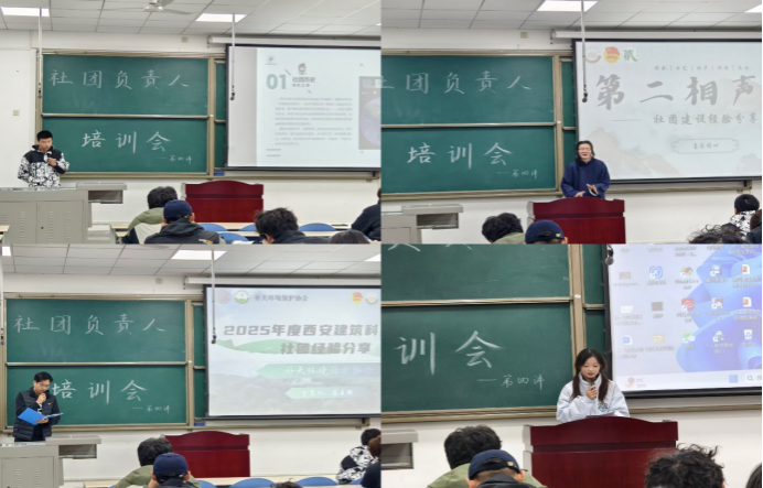 11月18日晚,培訓(xùn)第四講特邀西安交通大學科幻社,西安建筑科技大學補天環(huán)境保護社、第二相聲社,我校追夢啦啦隊協(xié)會等負責人主講。西安交通大學科幻社分享了特色活動策劃經(jīng)驗,展現(xiàn)科幻文化與社團創(chuàng)新的融合路徑。西安建筑科技大學補天環(huán)境保護社團聚焦公益實踐,探討環(huán)保類社團的活動開展與社會價值傳播;第二相聲社以“傳承曲藝文化”為主題,分享了傳統(tǒng)藝術(shù)社團的運營心得,彰顯了傳統(tǒng)文化在校園中的生機與活力。我校追夢啦啦隊協(xié)會結(jié)合實際案例,從活動籌備、賽事組織等方面,進行了全面而深入的分享。