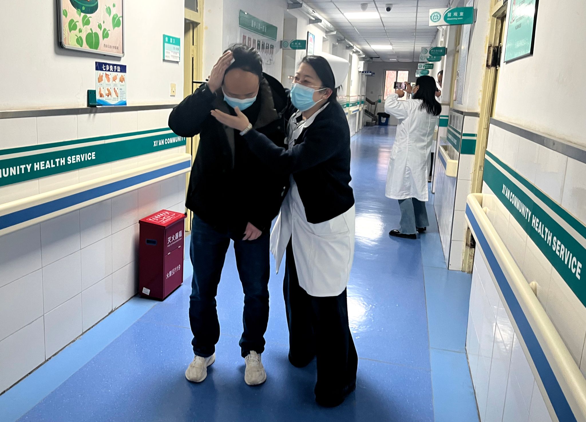 隨著演練總指揮趙利劍一聲“開始”指令,應(yīng)急疏散救治演練正式啟動(dòng)。模擬醫(yī)院住院部一樓3病房突發(fā)火情并產(chǎn)生大量煙霧,現(xiàn)場(chǎng)工作人員第一時(shí)間啟動(dòng)應(yīng)急預(yù)案,迅速撥打內(nèi)部火警電話并上報(bào)演練指揮部。在校保衛(wèi)處與趙利劍團(tuán)隊(duì)的統(tǒng)籌協(xié)調(diào)下,醫(yī)院應(yīng)急滅火隊(duì)快速攜帶滅火器、消防水帶等器材趕赴現(xiàn)場(chǎng),按照“先控制、后消滅”原則開展初期火情處置,有效阻斷火勢(shì)蔓延。