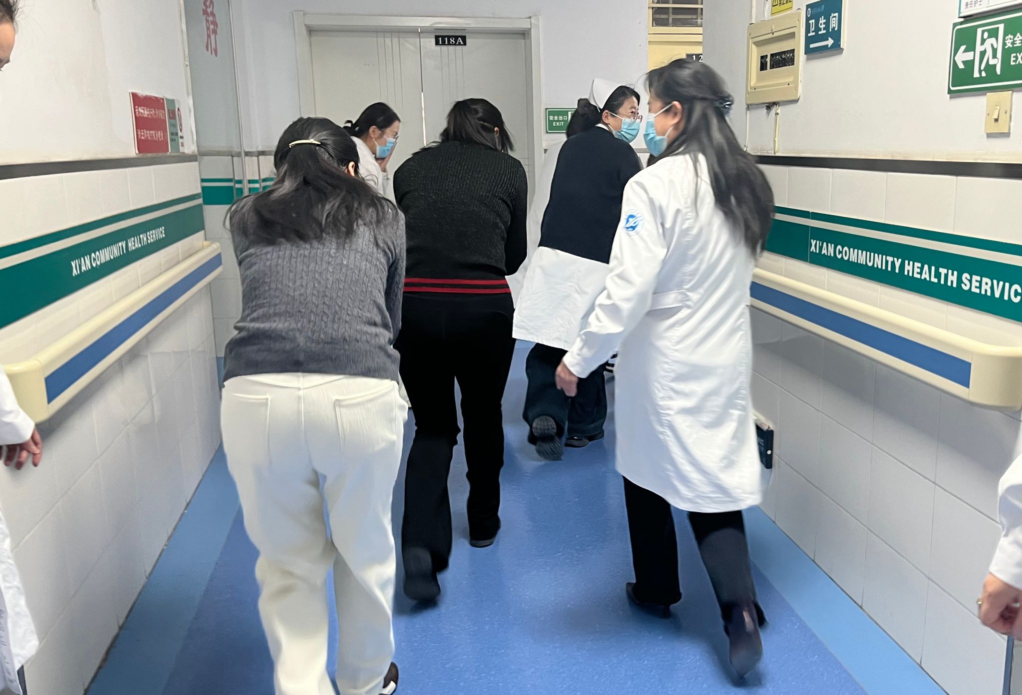 與此同時(shí),疏散引導(dǎo)人員快速打開安全出口,引導(dǎo)就診患者及醫(yī)護(hù)人員用濕毛巾捂住口鼻,彎腰低姿沿預(yù)定疏散路線快速撤離。針對(duì)行動(dòng)不便的模擬患者,工作人員采用攙扶、輪椅轉(zhuǎn)運(yùn)等方式全程協(xié)助,做到不推擠、不遺漏,確保所有人員在規(guī)定時(shí)間內(nèi)安全撤離至室外指定集合點(diǎn),各小組隨即快速清點(diǎn)人數(shù)并向指揮部匯報(bào)。醫(yī)院應(yīng)急醫(yī)療小組同步在疏散現(xiàn)場(chǎng)搭建臨時(shí)救護(hù)點(diǎn),丁麗團(tuán)隊(duì)全力協(xié)助醫(yī)療演練開展,配合做好救護(hù)物資轉(zhuǎn)運(yùn)、模擬患者傷情配合、救治現(xiàn)場(chǎng)輔助等工作,助力醫(yī)療小組高效完成傷口處理、吸氧、頭部包扎等緊急救治流程,充分彰顯醫(yī)療應(yīng)急處置的專業(yè)性與團(tuán)隊(duì)協(xié)作的高效性。