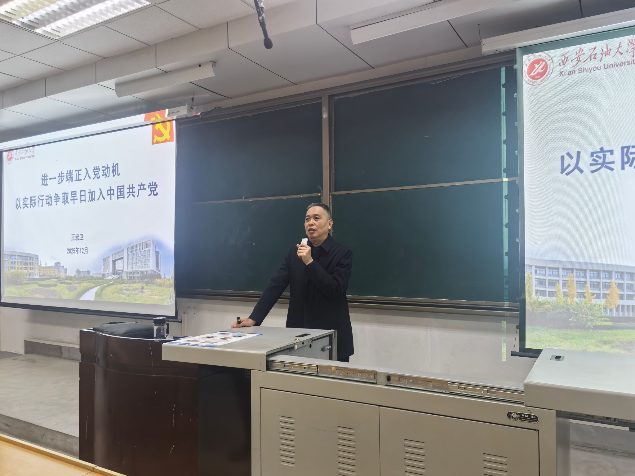 王宏衛(wèi)結(jié)合《中國(guó)共產(chǎn)黨黨員教育管理工作條例》《全國(guó)黨員教育培訓(xùn)規(guī)劃》《中國(guó)共產(chǎn)黨紀(jì)律處分條例》等文件要求,要求全體學(xué)員把端正入黨動(dòng)機(jī),堅(jiān)守初心使命作為爭(zhēng)取入黨的首要課題;其次對(duì)標(biāo)《中國(guó)共產(chǎn)黨章程》《關(guān)于新形勢(shì)下黨內(nèi)政治生活的若干準(zhǔn)則》等制度規(guī)范,強(qiáng)調(diào)全體學(xué)員要將錘煉黨性修養(yǎng)、提升政治品格作為自我提升的核心任務(wù);他結(jié)合高校黨建實(shí)際,通過剖析大學(xué)生入黨積極分子培養(yǎng)考核典型案例,引導(dǎo)學(xué)員將理論認(rèn)知轉(zhuǎn)化為實(shí)踐自覺,在知行合一中筑牢信仰之基?!扒嗄晔屈h的事業(yè)的繼承者,端正入黨動(dòng)機(jī)是入黨的第一步,更是一生的必修課?!彼銊?lì)全體學(xué)員牢記共產(chǎn)黨人初心使命,堅(jiān)定理想信念,恪守黨員品質(zhì),積極向黨組織靠攏。