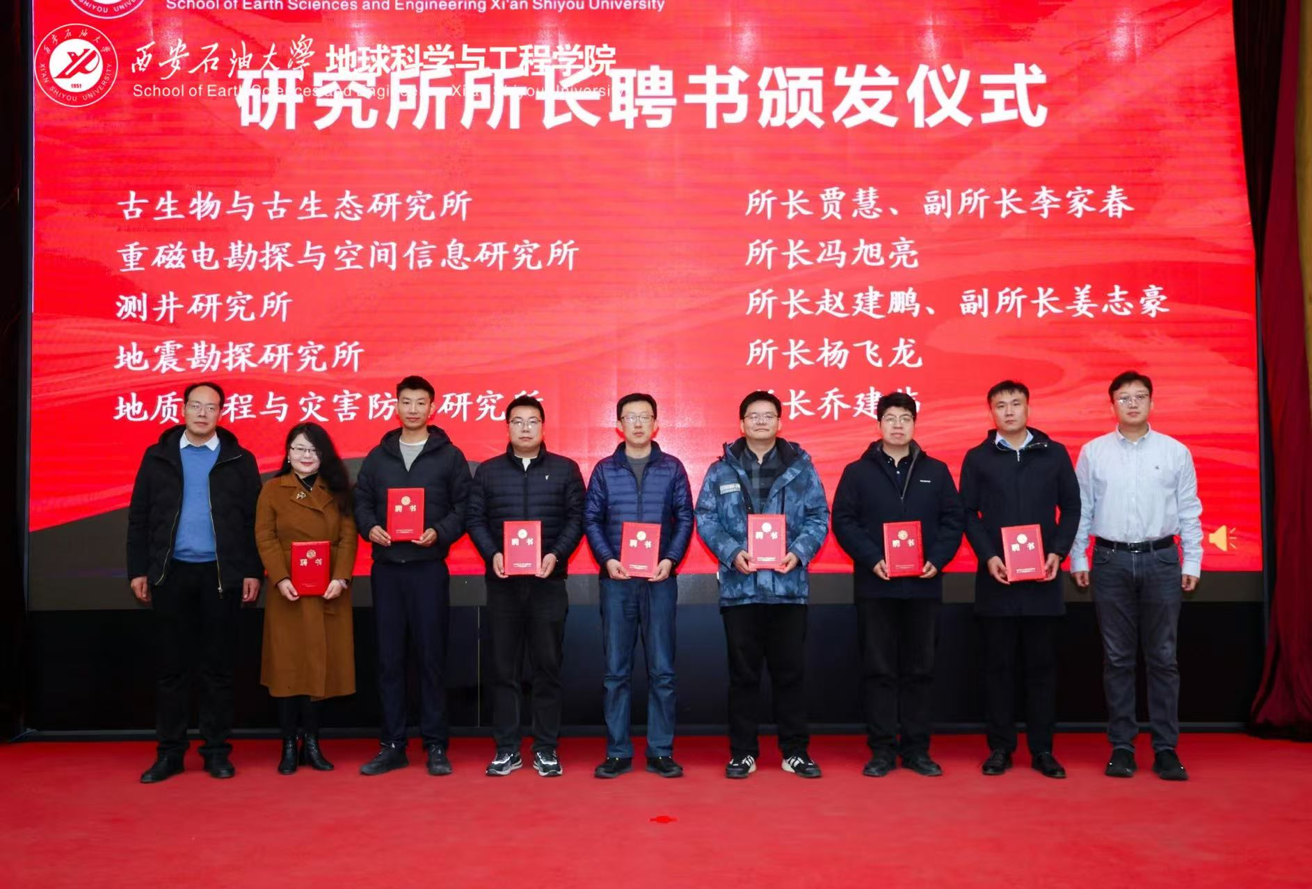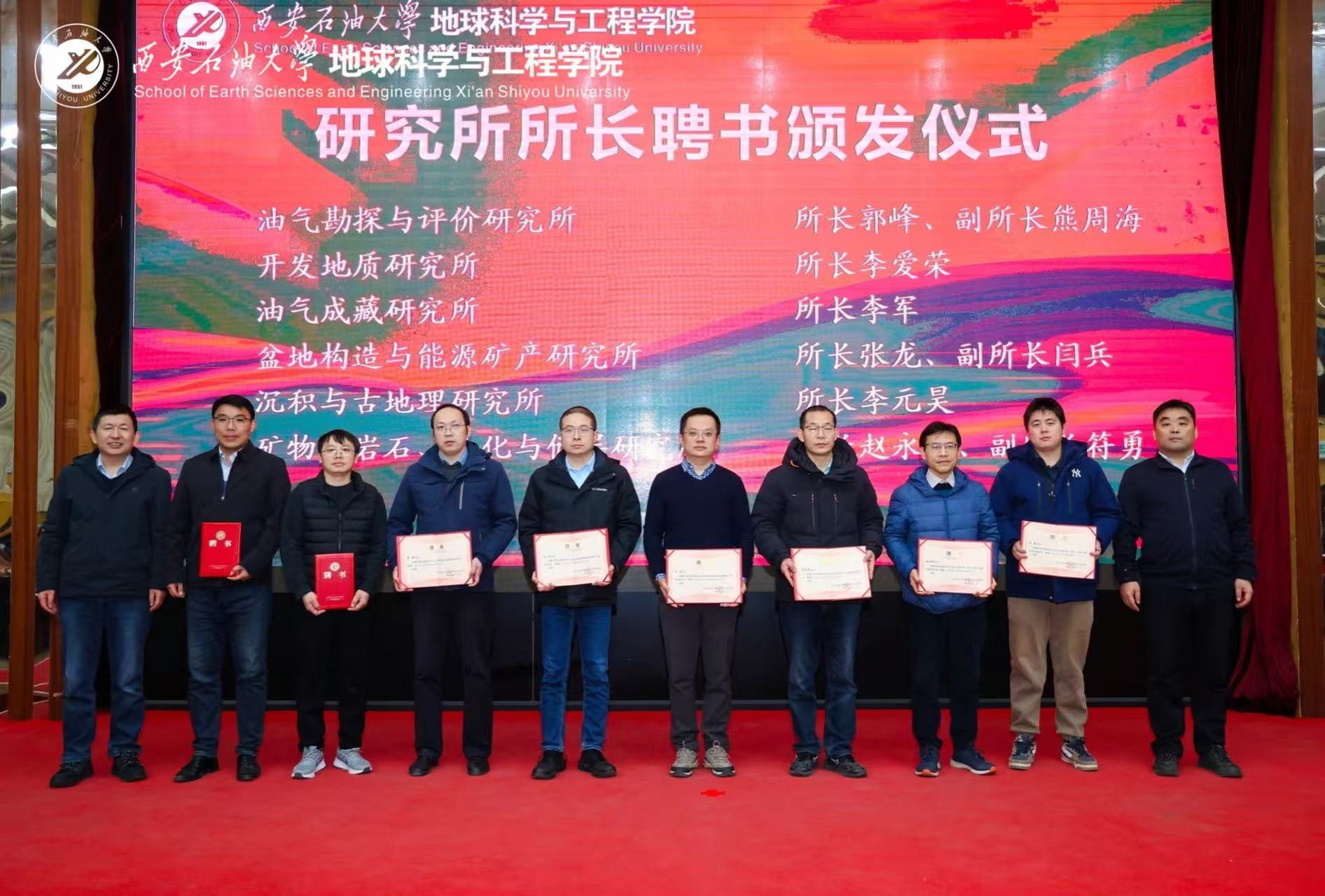 學(xué)院院長(zhǎng)宋立軍宣讀了學(xué)院新一屆研究所所長(zhǎng)聘任決定,學(xué)院領(lǐng)導(dǎo)分批為新組建的油氣地質(zhì)研究所、沉積與古地理研究所等11個(gè)研究所的15位新任所長(zhǎng)頒發(fā)了聘書(shū)。