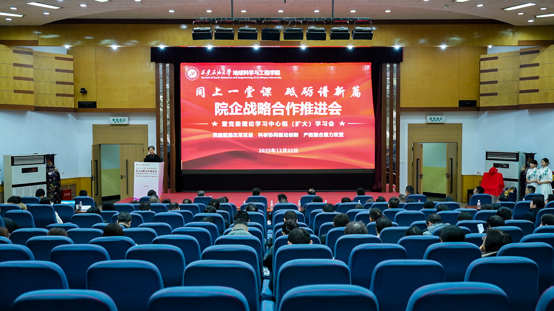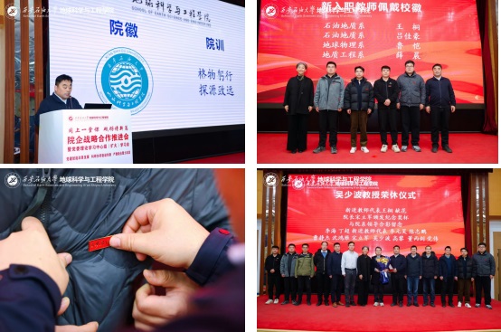 為貫徹落實(shí)學(xué)?!叭齻€(gè)年”建設(shè)部署,深化“院所制”改革,12月22日,地球科學(xué)與工程學(xué)院“同上一堂課 砥礪譜新篇”院企戰(zhàn)略合作推進(jìn)會(huì)暨黨委理論學(xué)習(xí)中心組(擴(kuò)大)學(xué)習(xí)會(huì)在雁塔校區(qū)舉行。會(huì)議以“黨建賦能改革發(fā)展,科研協(xié)同驅(qū)動(dòng)創(chuàng)新,產(chǎn)教融合聚力攻堅(jiān)”為主線,通過(guò)聯(lián)合研究院揭牌、前沿學(xué)術(shù)報(bào)告、專題思政課與學(xué)院內(nèi)部建設(shè)系列議程,匯聚發(fā)展共識(shí),擘畫(huà)未來(lái)藍(lán)圖。校長(zhǎng)王進(jìn)富,長(zhǎng)慶油田首席技術(shù)專家喻健,西安石文軟件有限公司董事長(zhǎng)、總經(jīng)理張小會(huì),副總經(jīng)理?xiàng)铎o波,校友工作與合作交流處相關(guān)負(fù)責(zé)人等校企嘉賓及全院師生代表共同參會(huì)。學(xué)院黨委書(shū)記高黎主持會(huì)議。