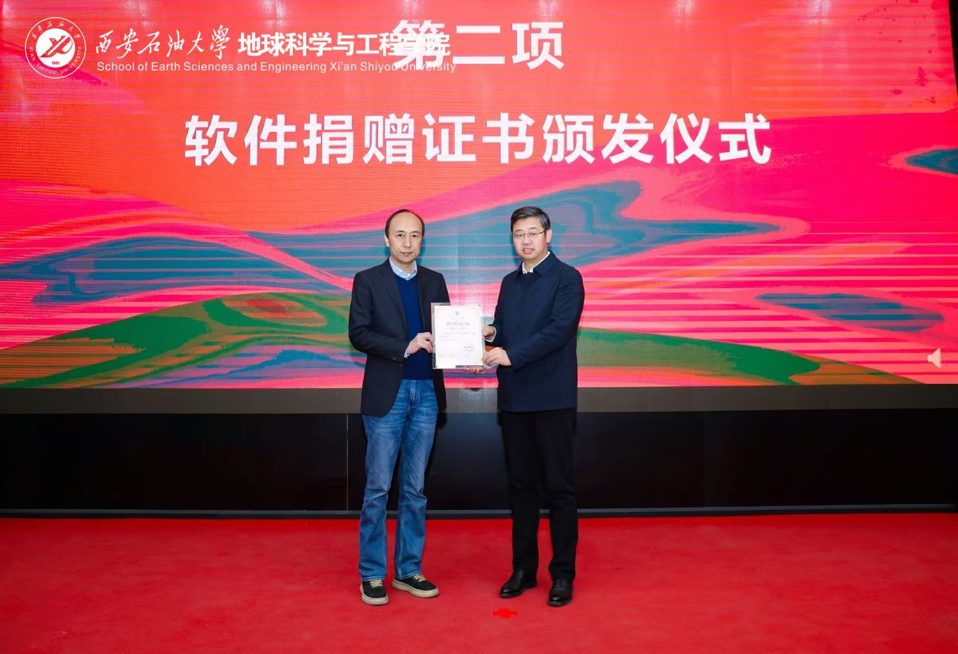 作為合作的實(shí)質(zhì)性支撐,石文軟件有限公司向?qū)W院捐贈(zèng)了市場(chǎng)價(jià)值叁百萬(wàn)元的自主知識(shí)產(chǎn)權(quán)專業(yè)軟件,王進(jìn)富代表學(xué)校向張小會(huì)頒發(fā)了捐贈(zèng)證書(shū)。