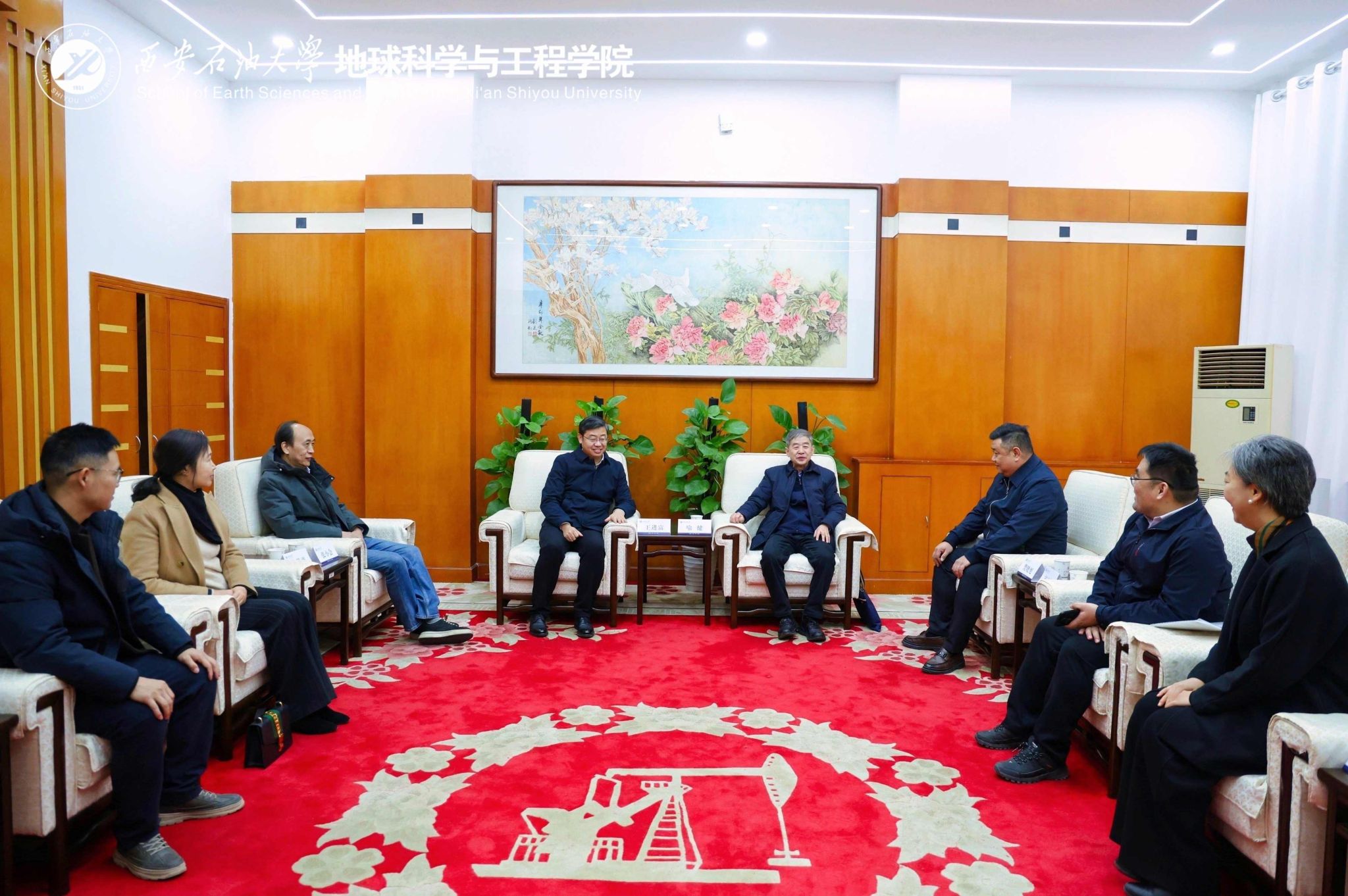 會(huì)前,王進(jìn)富在貴賓室會(huì)見(jiàn)了喻健、張小會(huì)一行,并圍繞深化產(chǎn)教融合、服務(wù)國(guó)家能源戰(zhàn)略、培養(yǎng)行業(yè)急需人才等進(jìn)行了深入交流,就推動(dòng)聯(lián)合研究院做實(shí)做強(qiáng)達(dá)成共識(shí)。校友工作與合作交流處、地球科學(xué)與工程學(xué)院陪同會(huì)見(jiàn)。