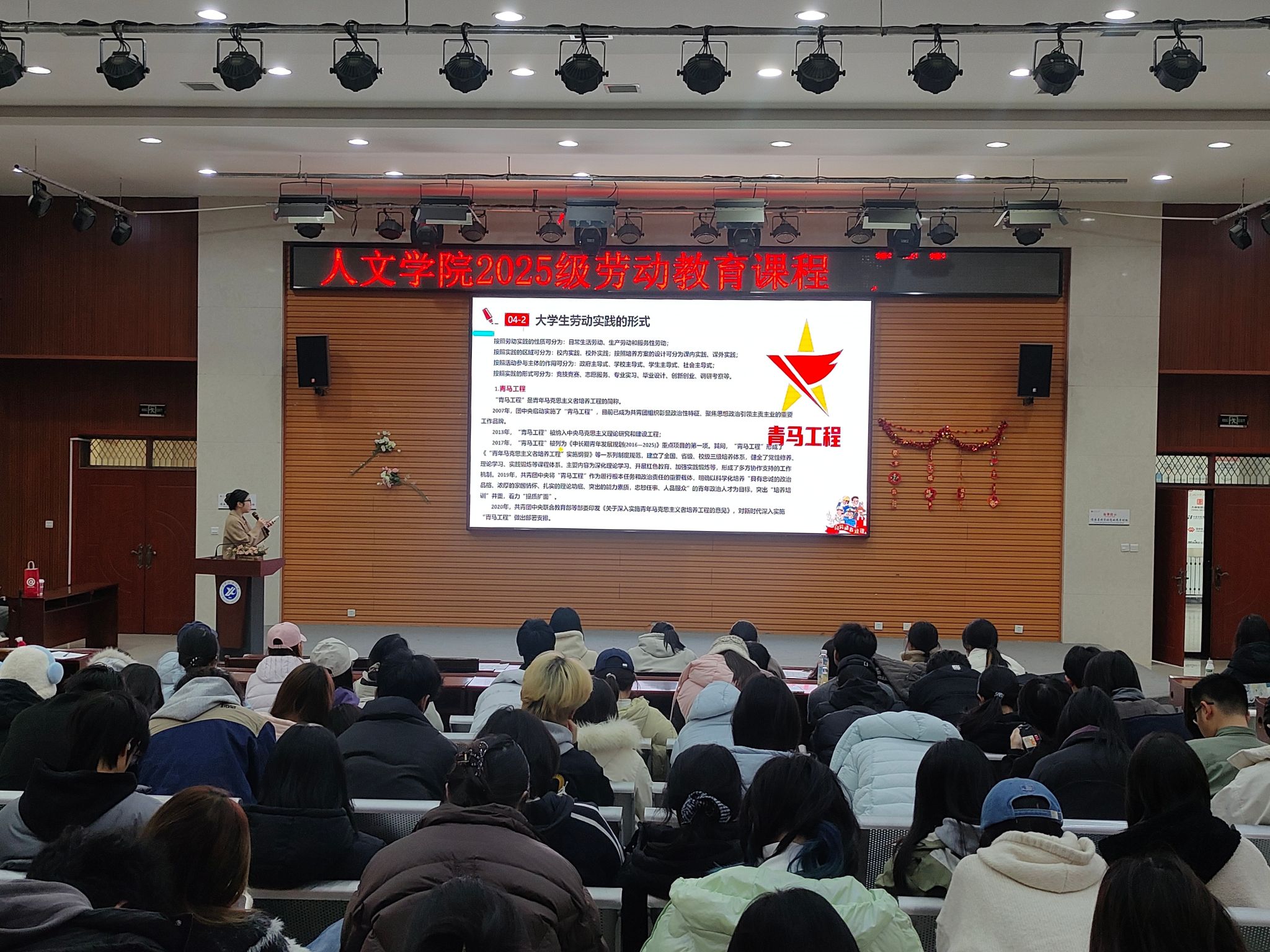 為推進(jìn)學(xué)院學(xué)風(fēng)建設(shè)及班級(jí)建設(shè),通過(guò)“勞動(dòng)教育”全面育人、綜合育人、實(shí)踐育人,促進(jìn)學(xué)生全面發(fā)展,12月29日,人文學(xué)院在崇文樓118多功能會(huì)議室舉辦勞動(dòng)教育理論課暨假期安全教育年級(jí)大會(huì)。本次活動(dòng)由2025級(jí)輔導(dǎo)員張馨元主講,全體2025級(jí)學(xué)生參加。