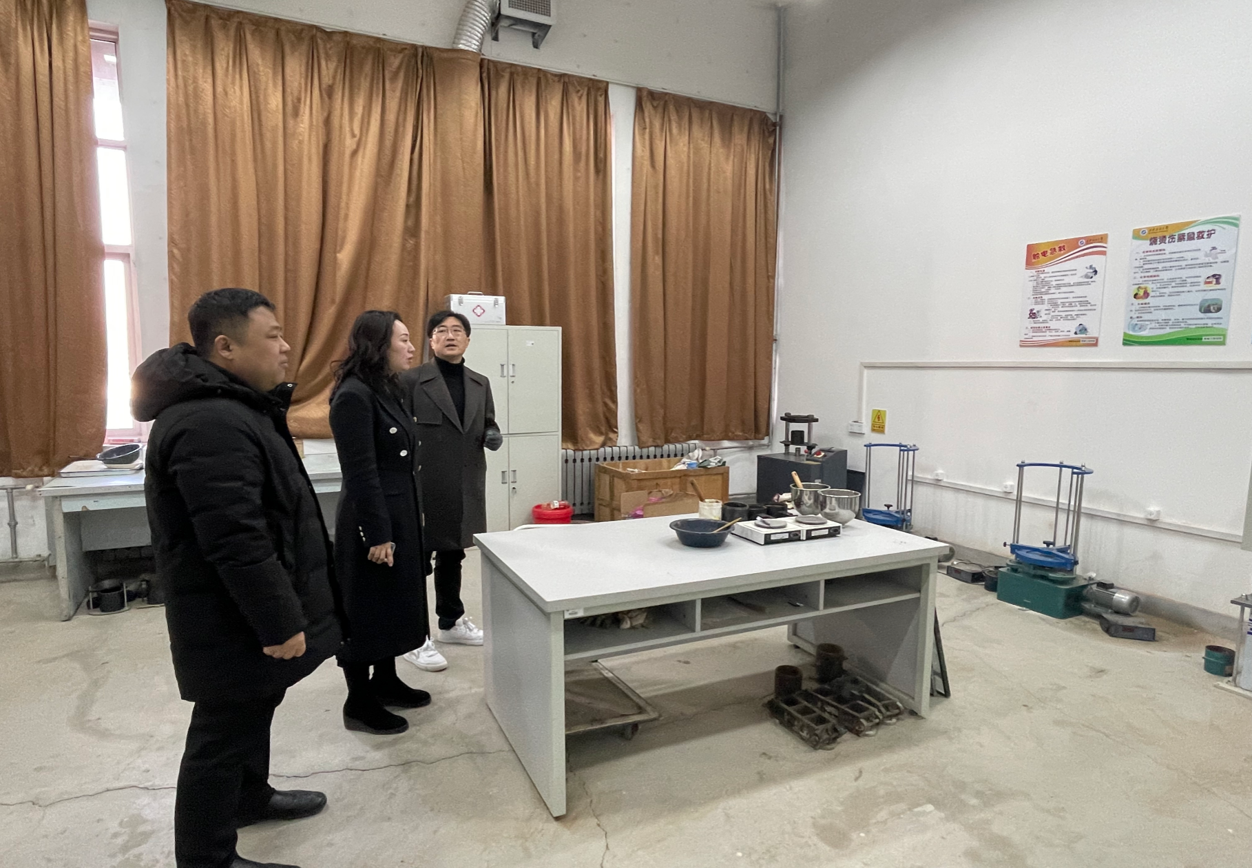 2025年12月25日,學(xué)院黨委書記賈莉娜、黨委副書記高亮、副院長(zhǎng)崔瑩帶領(lǐng)實(shí)驗(yàn)室安全檢查組,對(duì)學(xué)院所屬本科教學(xué)實(shí)驗(yàn)室開展全面、細(xì)致的安全隱患大檢查。檢查組重點(diǎn)圍繞消防設(shè)施完好性、水電安全狀況、特種設(shè)備使用及日常管理等方面進(jìn)行了深入排查。檢查過程中,院領(lǐng)導(dǎo)詳細(xì)查閱了實(shí)驗(yàn)室日常運(yùn)行記錄、儀器使用登記等情況,強(qiáng)調(diào)實(shí)驗(yàn)室教師必須時(shí)刻緊繃安全弦,嚴(yán)格執(zhí)行國(guó)家及學(xué)校實(shí)驗(yàn)室安全管理規(guī)定,定期開展安全隱患自查自糾,做到責(zé)任到人、管理到位。