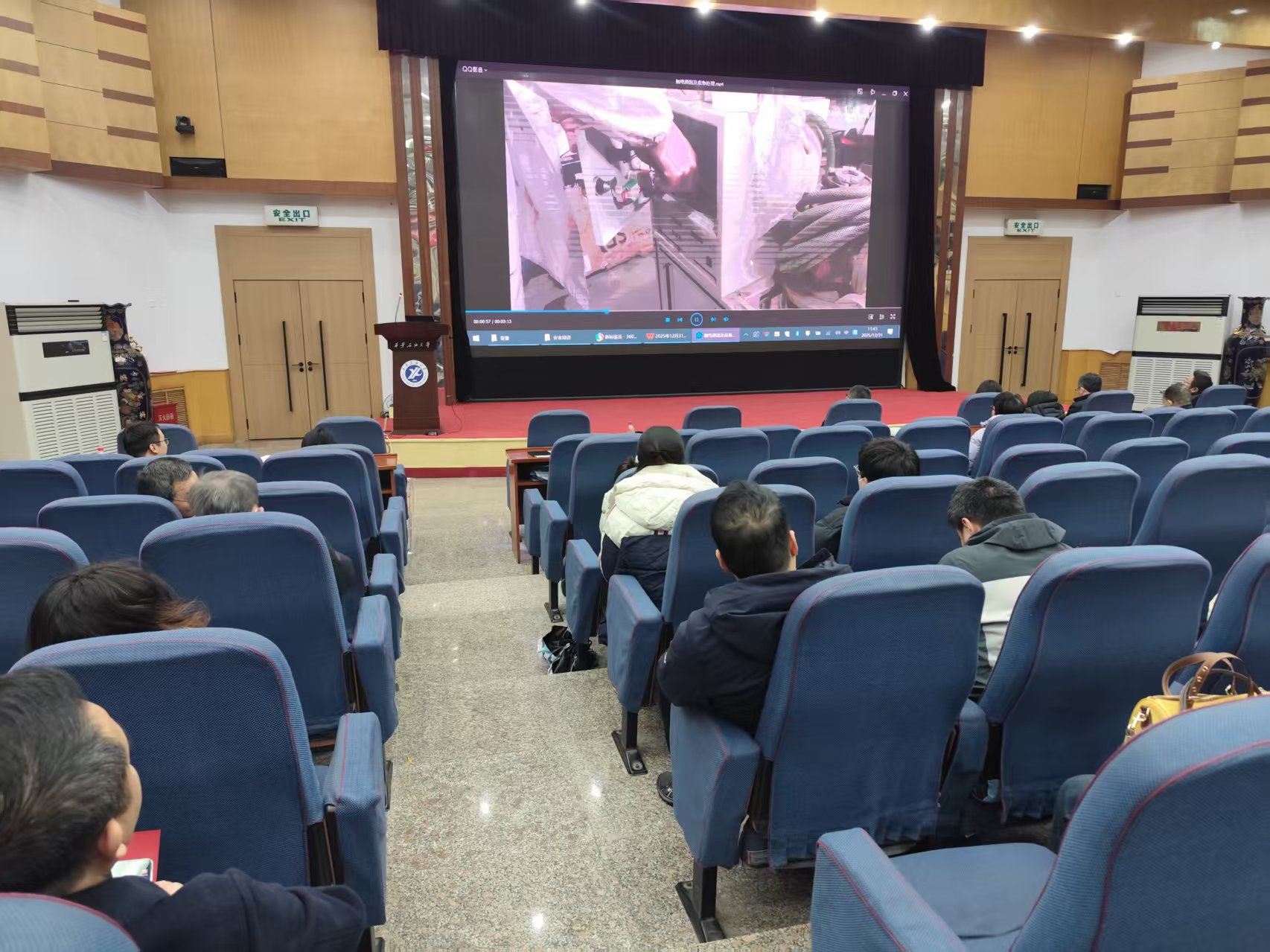 為進(jìn)一步鞏固檢查成效,強(qiáng)化全院教職工特別是實(shí)驗(yàn)室管理人員與使用人員的安全責(zé)任意識(shí)和防護(hù)能力,學(xué)院于2025年12月31日組織全院教職工開展了實(shí)驗(yàn)室安全防護(hù)專題宣傳教育活動(dòng)?;顒?dòng)結(jié)合具體案例,對(duì)實(shí)驗(yàn)室常見火災(zāi)風(fēng)險(xiǎn)和用電安全開展專項(xiàng)宣教。通過本次專項(xiàng)宣傳教育活動(dòng),全院教職工對(duì)實(shí)驗(yàn)室安全管理有了更深刻的理解,安全紅線意識(shí)和底線思維得到進(jìn)一步強(qiáng)化。