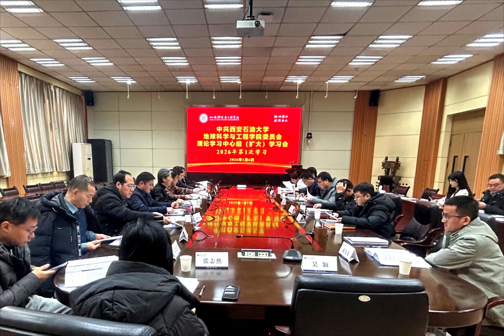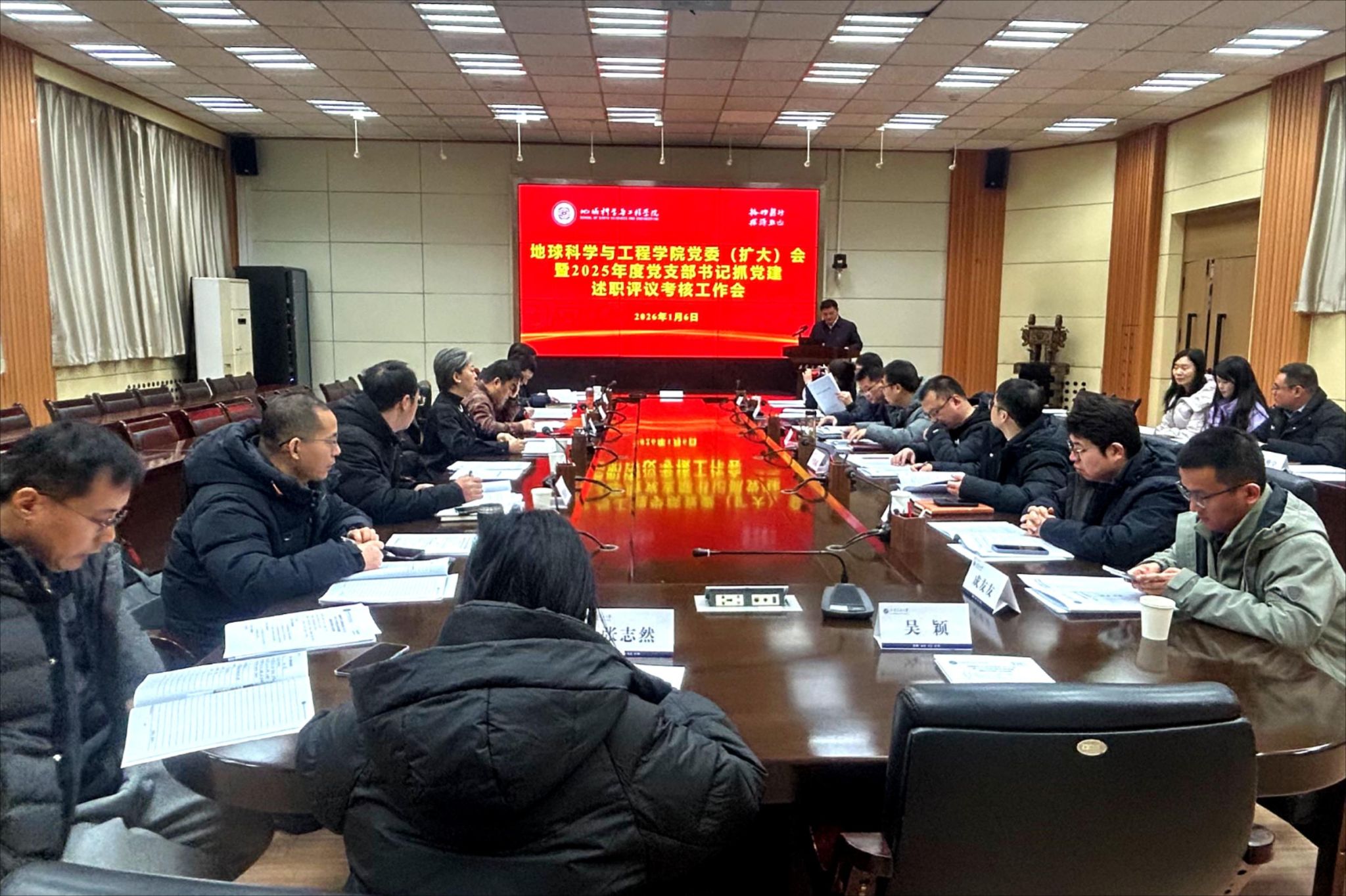 1月6日上午,地球科學與工程學院在雁塔校區(qū)第二會議室召開2025年度黨支部書記抓黨建述職評議考核工作會議,并隨后召開2026年第1次黨委理論學習中心組(擴大)學習會。學院黨委委員、領導班子成員,院長助理,各黨支部書記、系主任(副主任)、組織員以及省政協(xié)委員和學校“雙代會”代表等參加會議。學院黨委副書記董丙劍主持述職評議會。