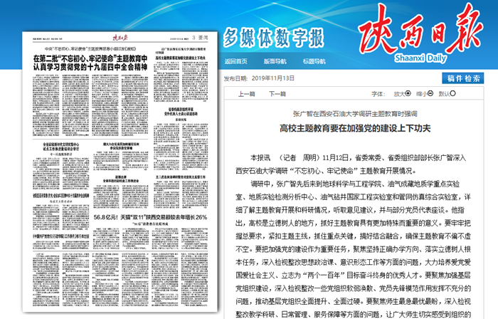【陜西日?qǐng)?bào)】張廣智在西安石油大學(xué)調(diào)研主題教育時(shí)強(qiáng)調(diào)高校主題教育要在加強(qiáng)黨的建設(shè)上下功夫