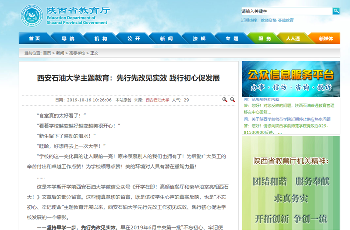 【省教育廳】西安石油大學(xué)主題教育:先行先改見(jiàn)實(shí)效 踐行初心促發(fā)展