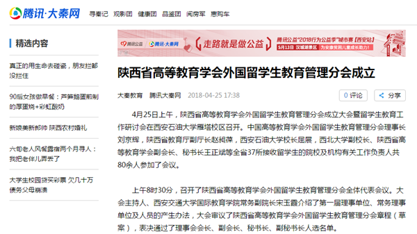 【騰訊大秦網(wǎng)】陜西省高等教育學(xué)會(huì)外國(guó)留學(xué)生教育管理分會(huì)成立